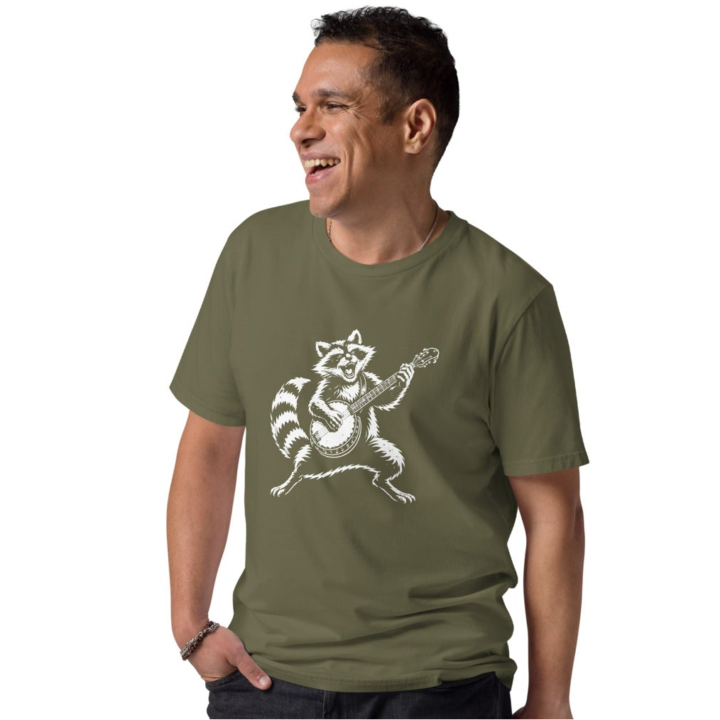 A playful raccoon music design that blends folk-inspired charm, personality, and clean line art into an easy everyday graphic.