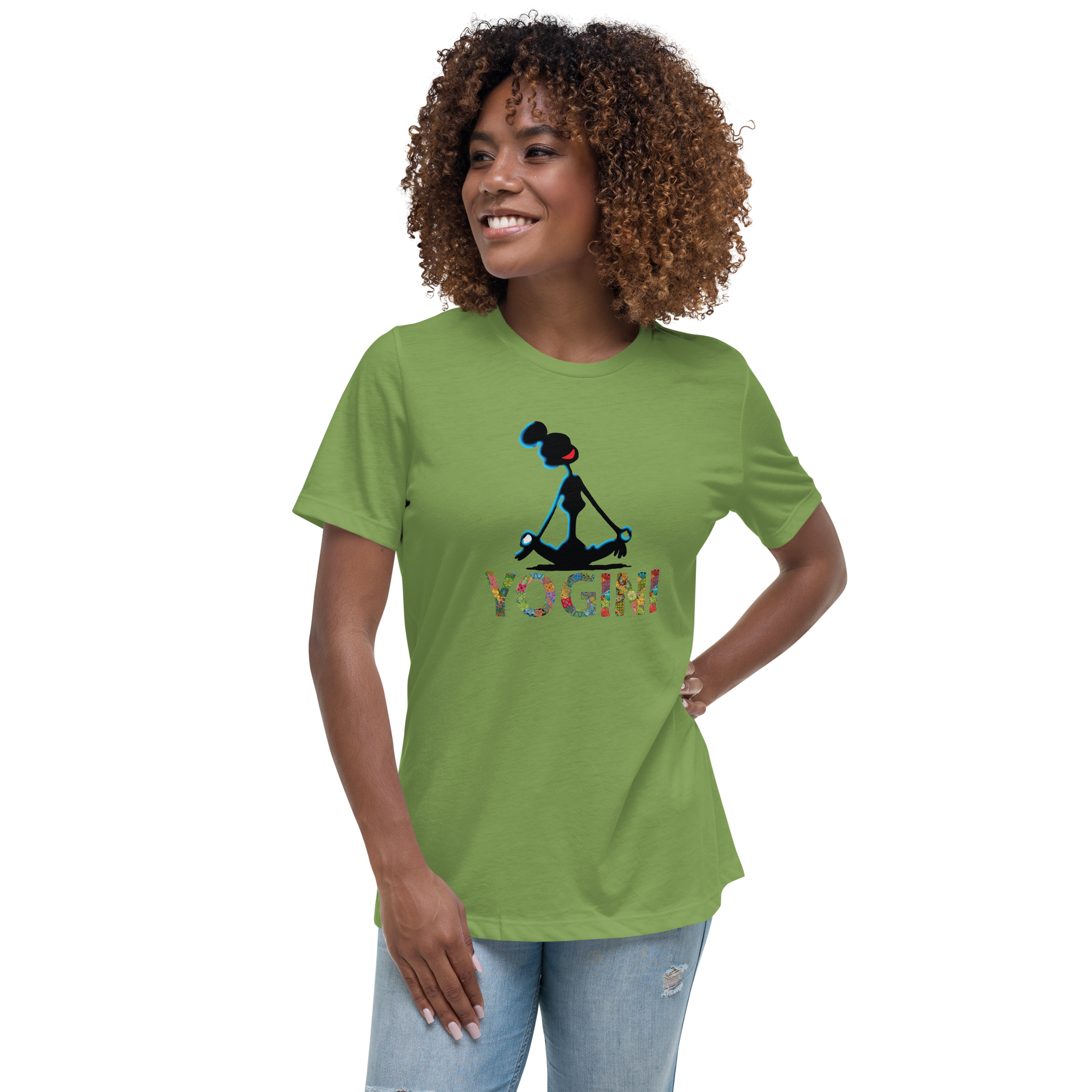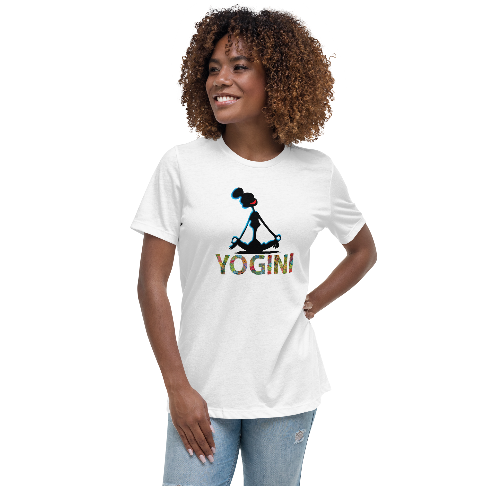 Find your balance in style. This relaxed-fit women’s tee features a peaceful meditating silhouette with vibrant “YOGINI” lettering — perfect for mindful days and effortless comfort.