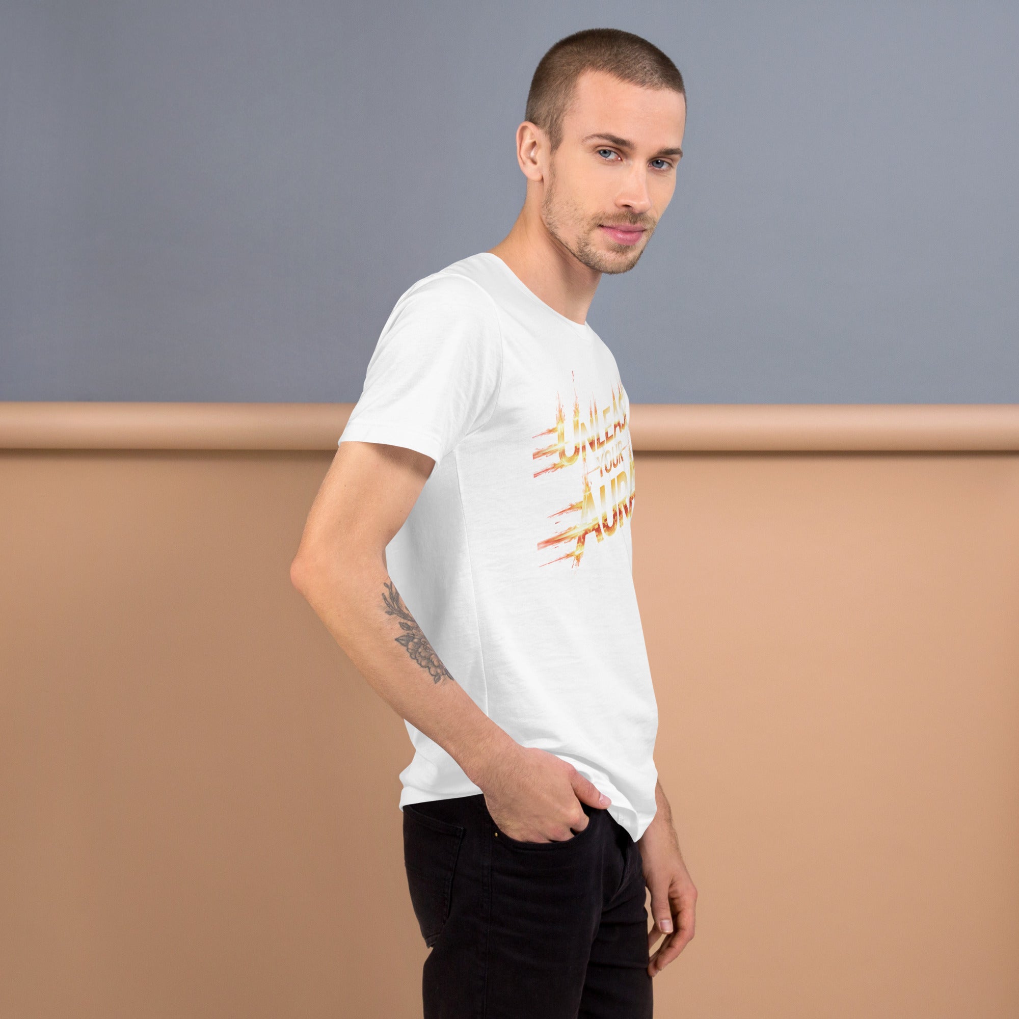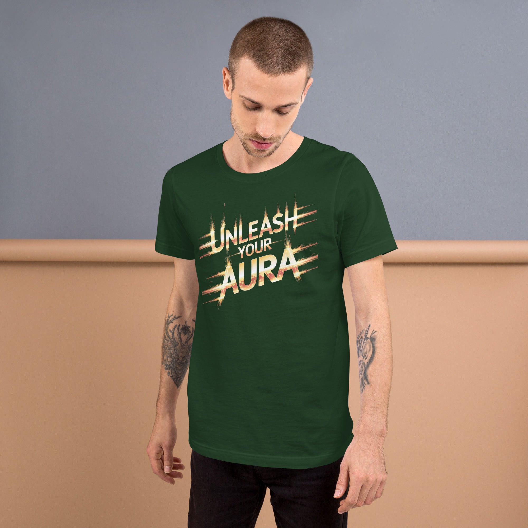 Step into your power with the Unleash Your Aura T-shirt, a bold fusion of aura energy burst design and fiery aura text art.