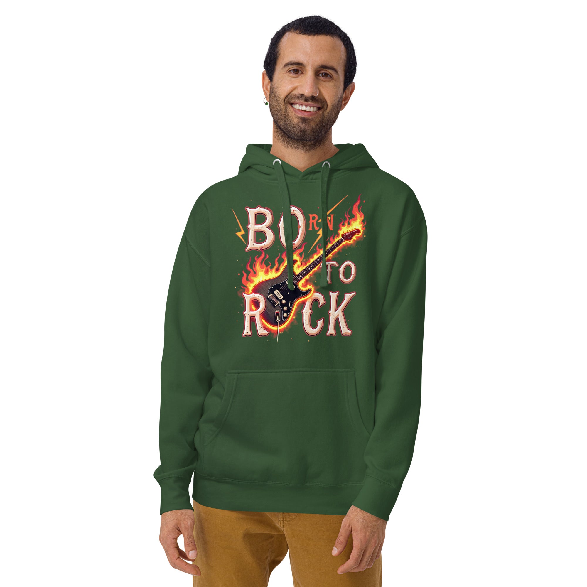 Turn up the heat with the “Born to Rock” hoodie—complete with blazing guitar flames and vintage grit. This one’s for fire-hearted rockers and stage legends.