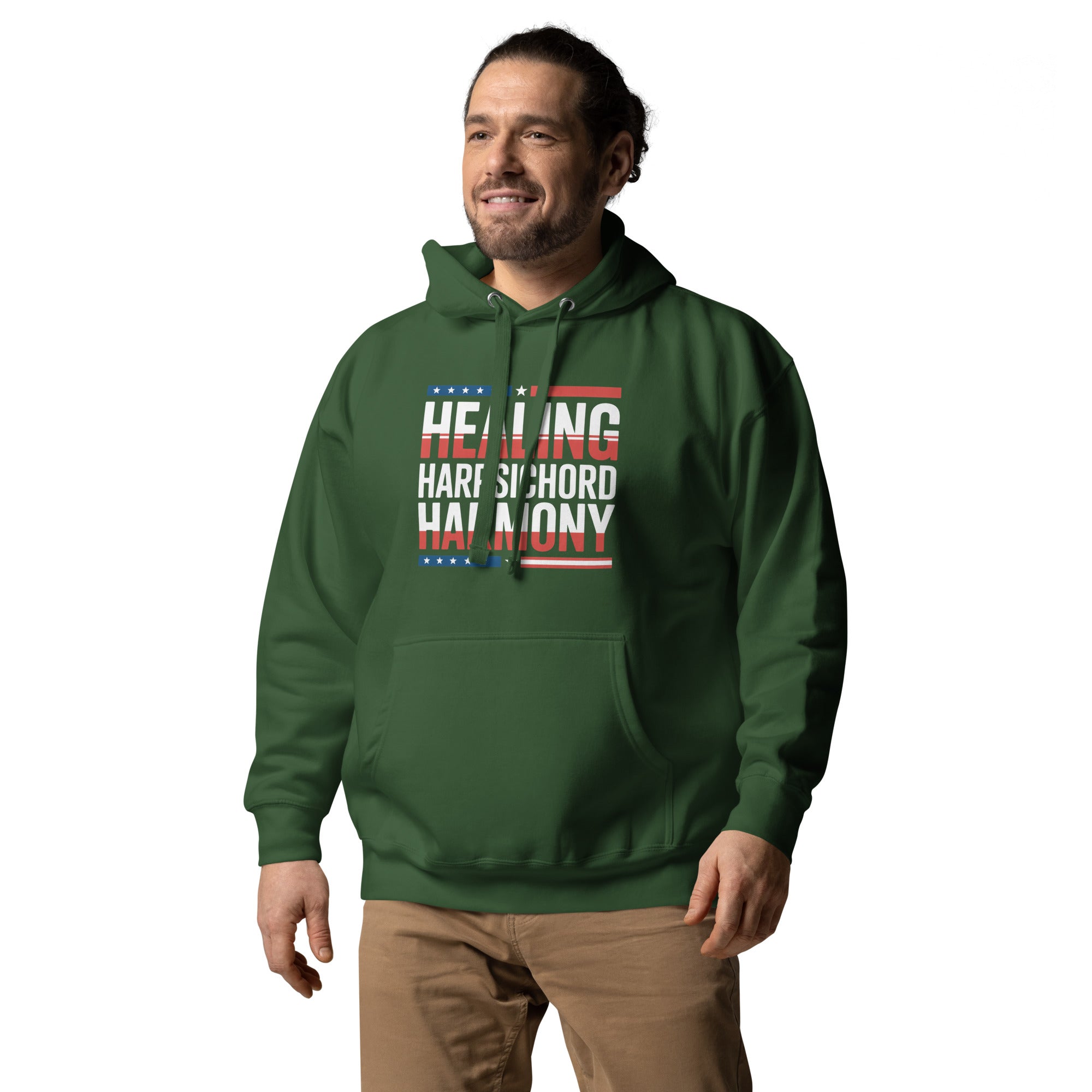 Let your wardrobe sing with patriotic pride in the Healing Harpsichord Harmony hoodie 🇺🇸. With a star-spangled palette and symphonic flair, this hoodie fuses freedom and finesse — perfect for music lovers who vibe with retro red-white-and-blue rhythm 🎶.
