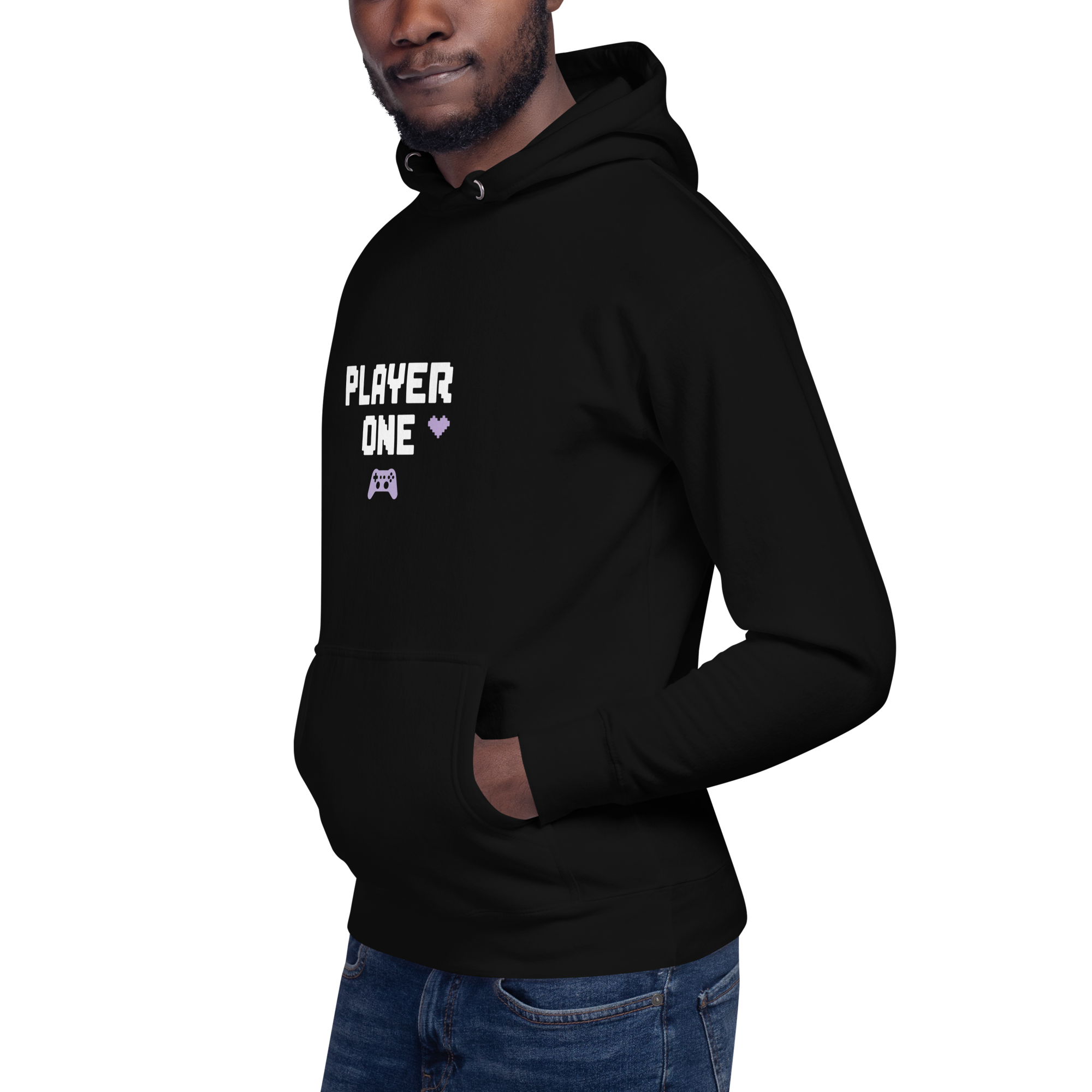 The Player One Hoodie in sleek black is the ultimate minimalist gamer flex. Featuring clean pixel art and a heart + controller graphic, it’s a love letter to gaming — simple, stylish, and powerful.