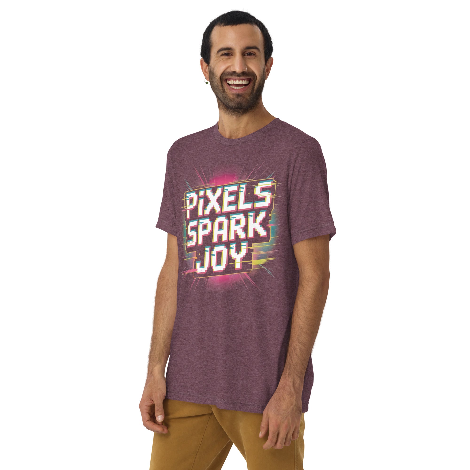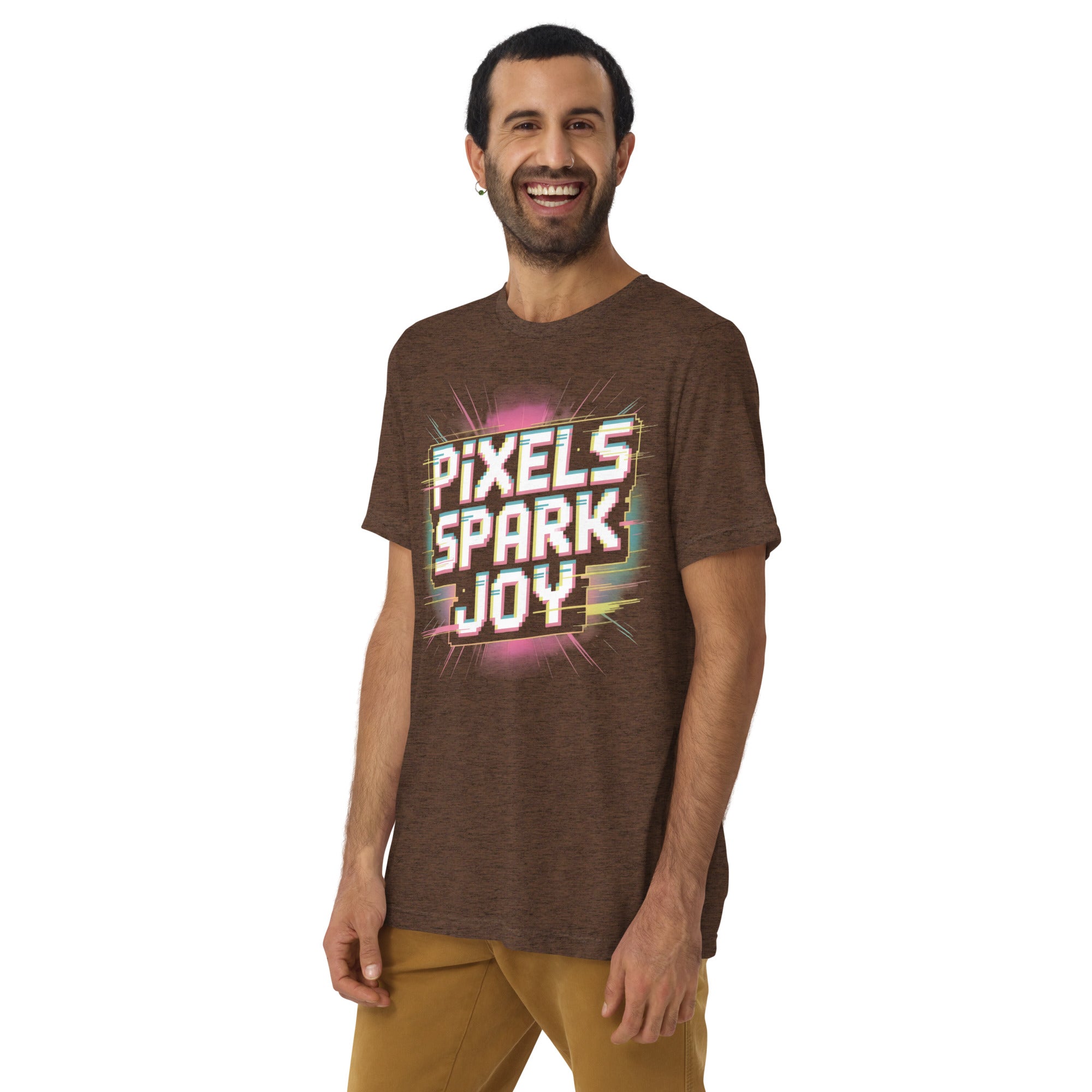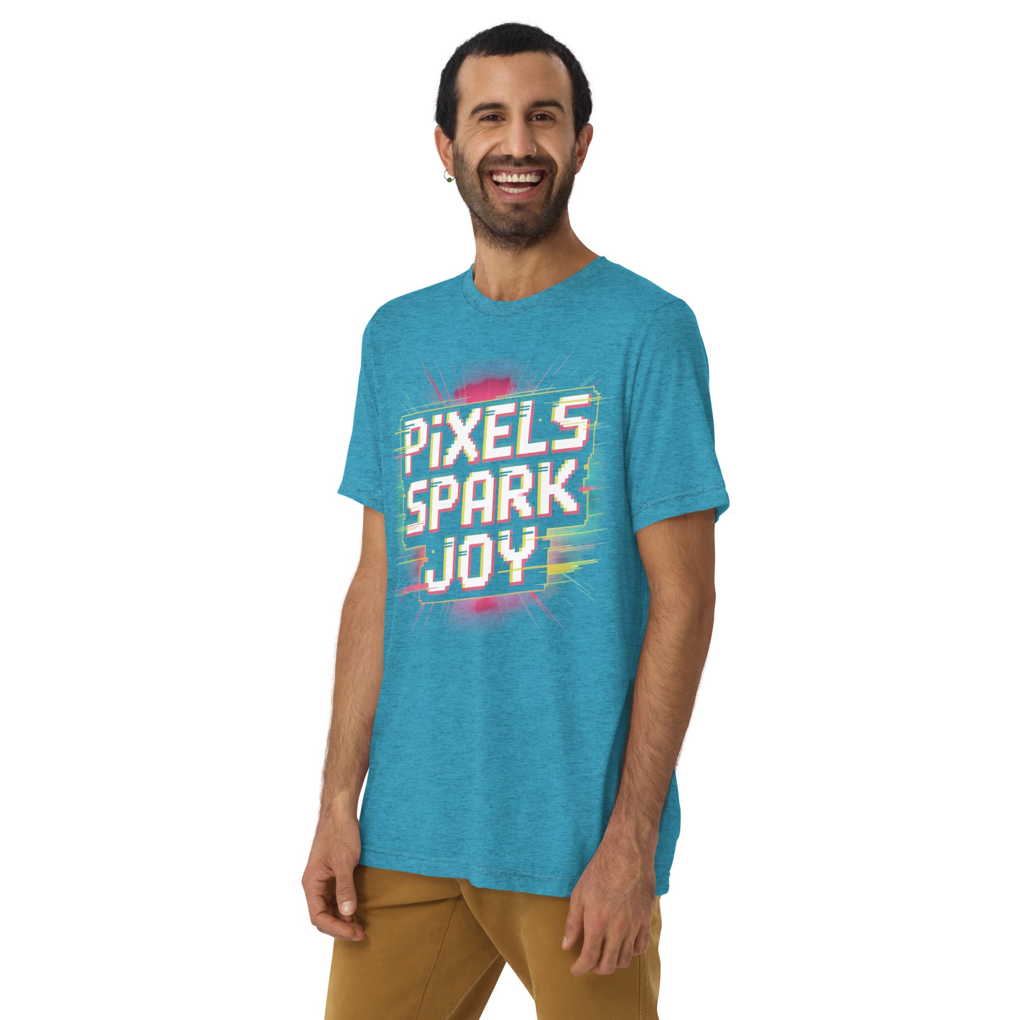 Celebrate the magic of pixels with the Pixels Spark Joy Pixel Gaming T Shirt.