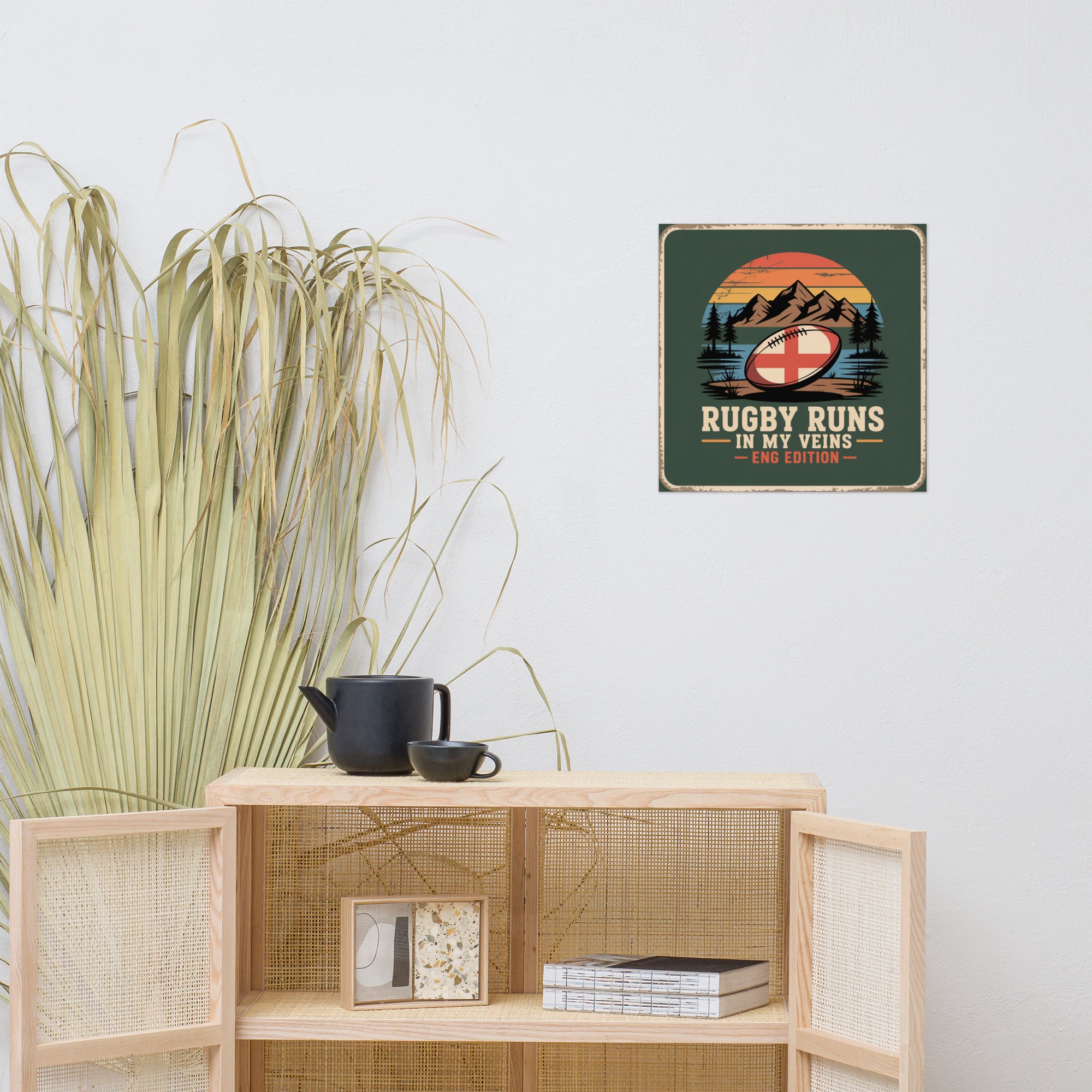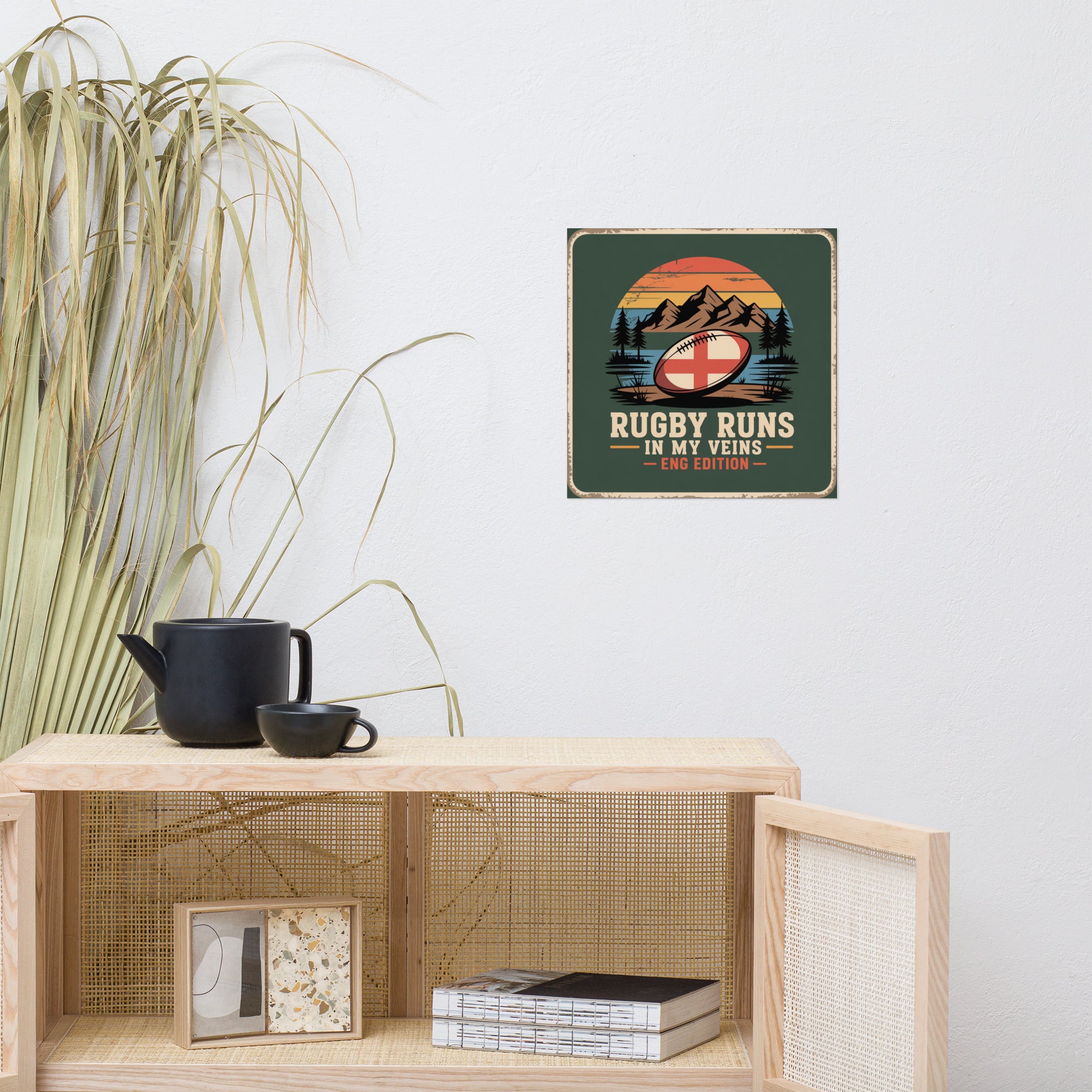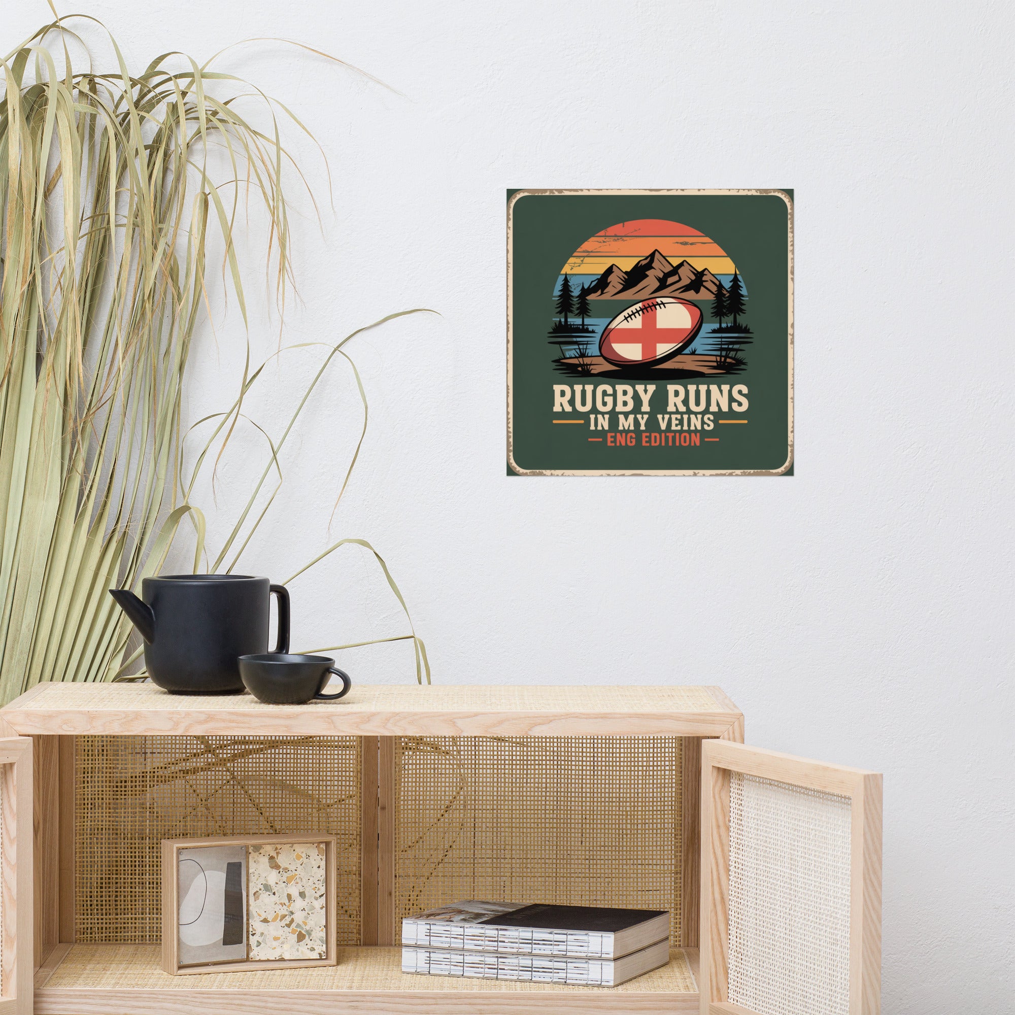 For the die-hard English rugby supporter, this poster blends timeless heritage with fierce national pride. Featuring the iconic St. George’s cross on a rugged ball beneath a sunset sky — it’s a tribute to England’s passion for the pitch.