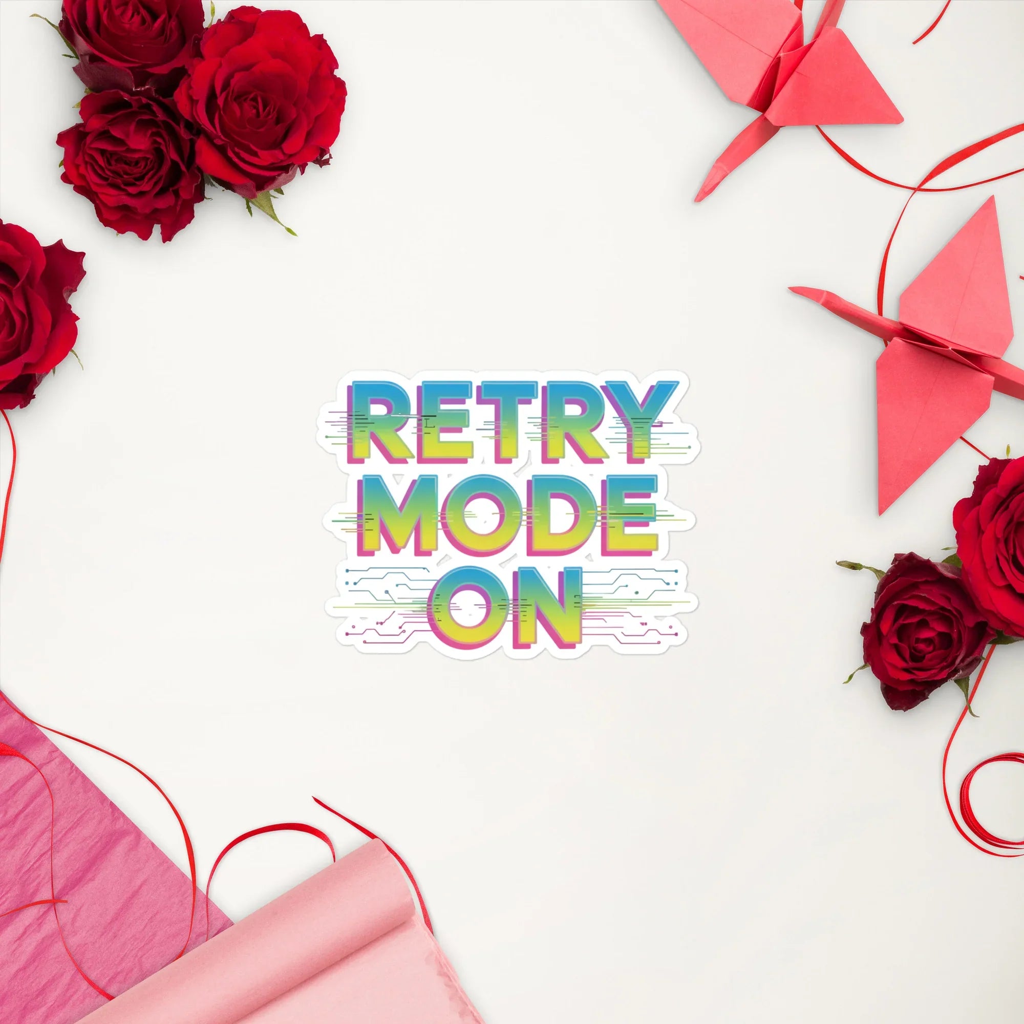 The Retry Mode On Sticker brings gamer resilience to life with its neon glitch typography and electric energy.