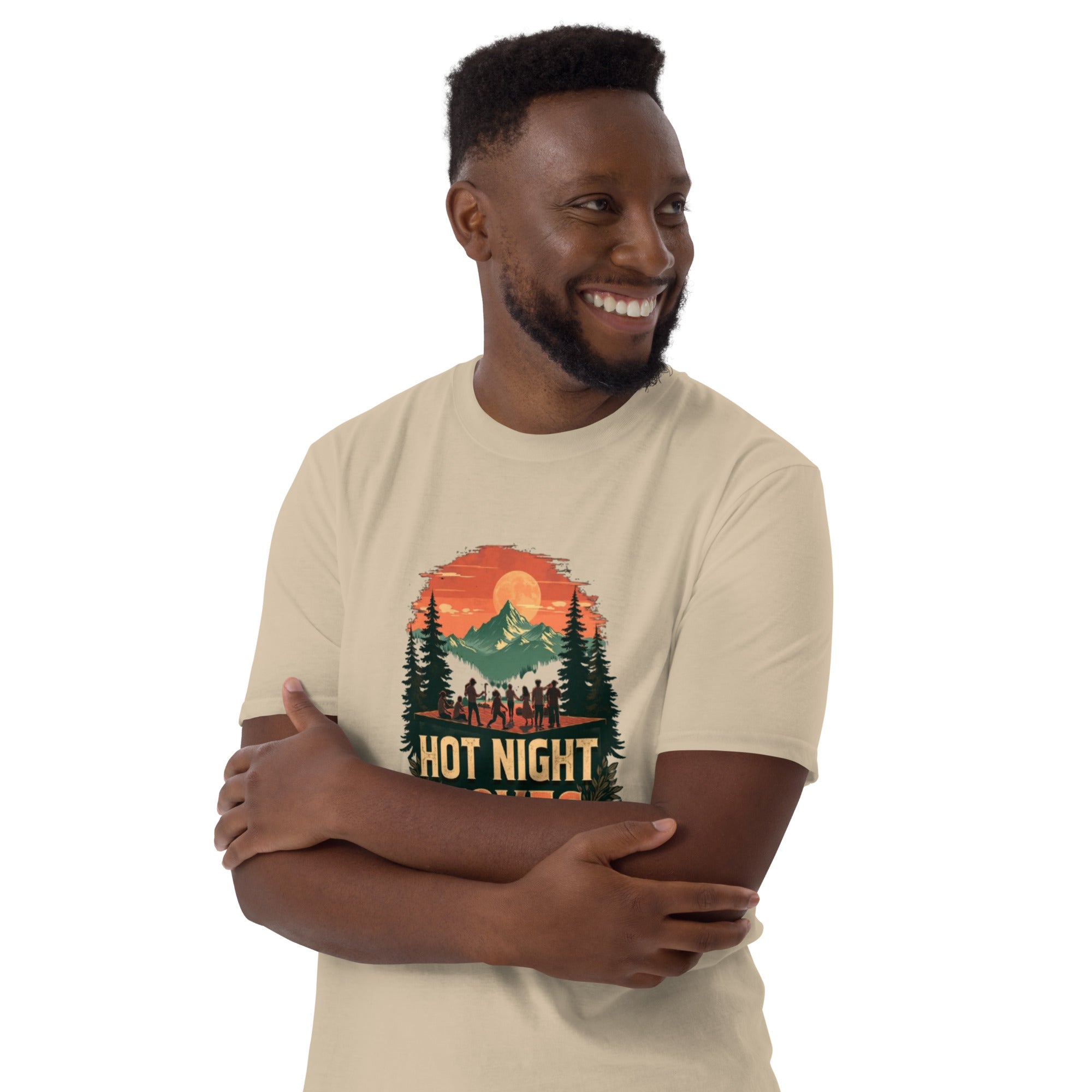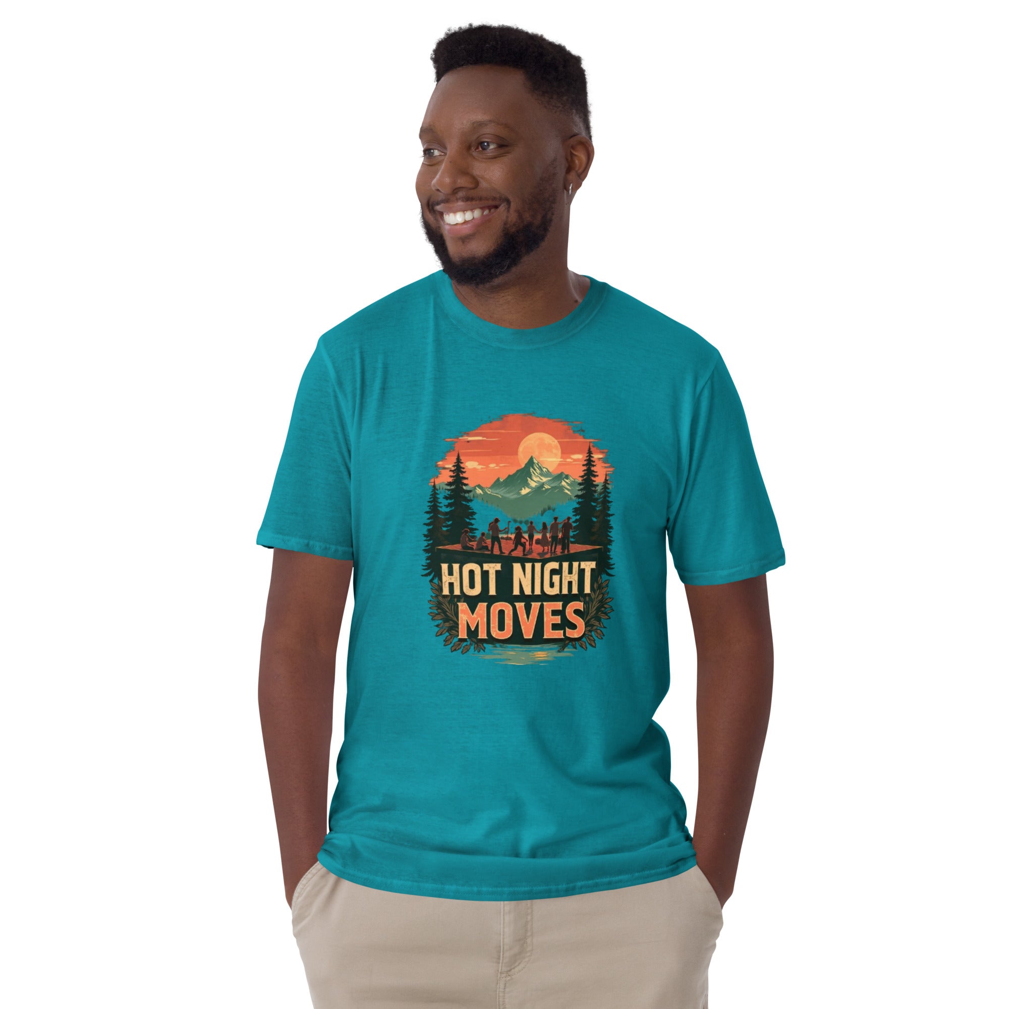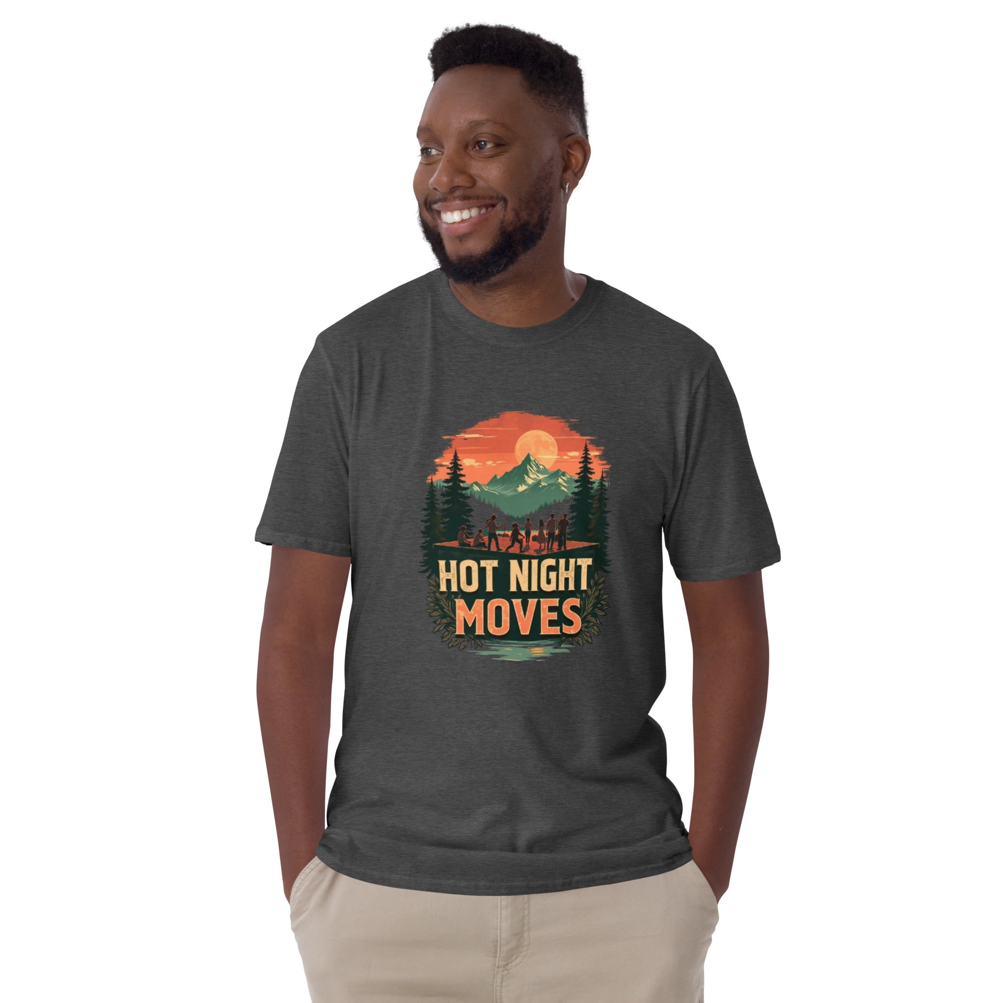Feel the beat of the wild in the Hot Night Moves Tee, a sunset scene packed with rhythm, energy, and forest fire vibes. With silhouetted dancers moving to the music on a mountain platform, this design captures the magic of nature, friends, and unforgettable nights.