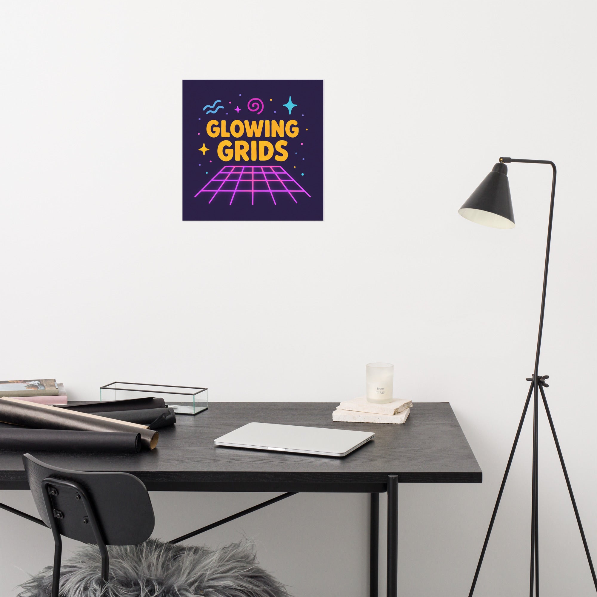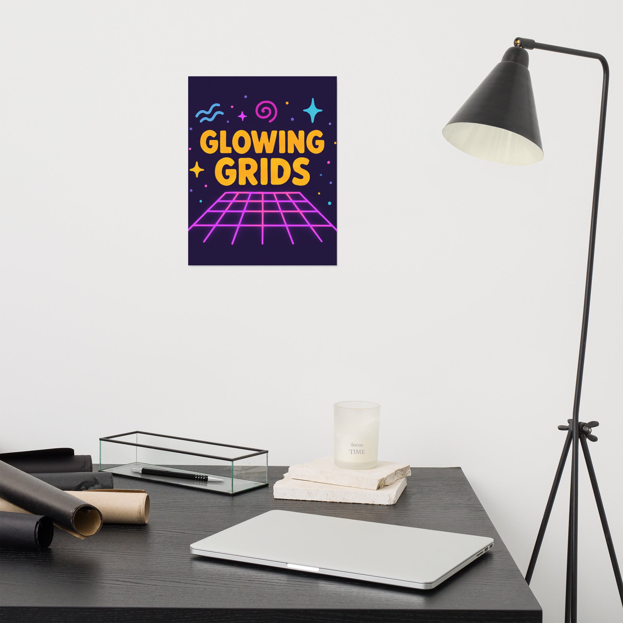 Glowing Grids Poster – Retro Neon Music Matrix Art