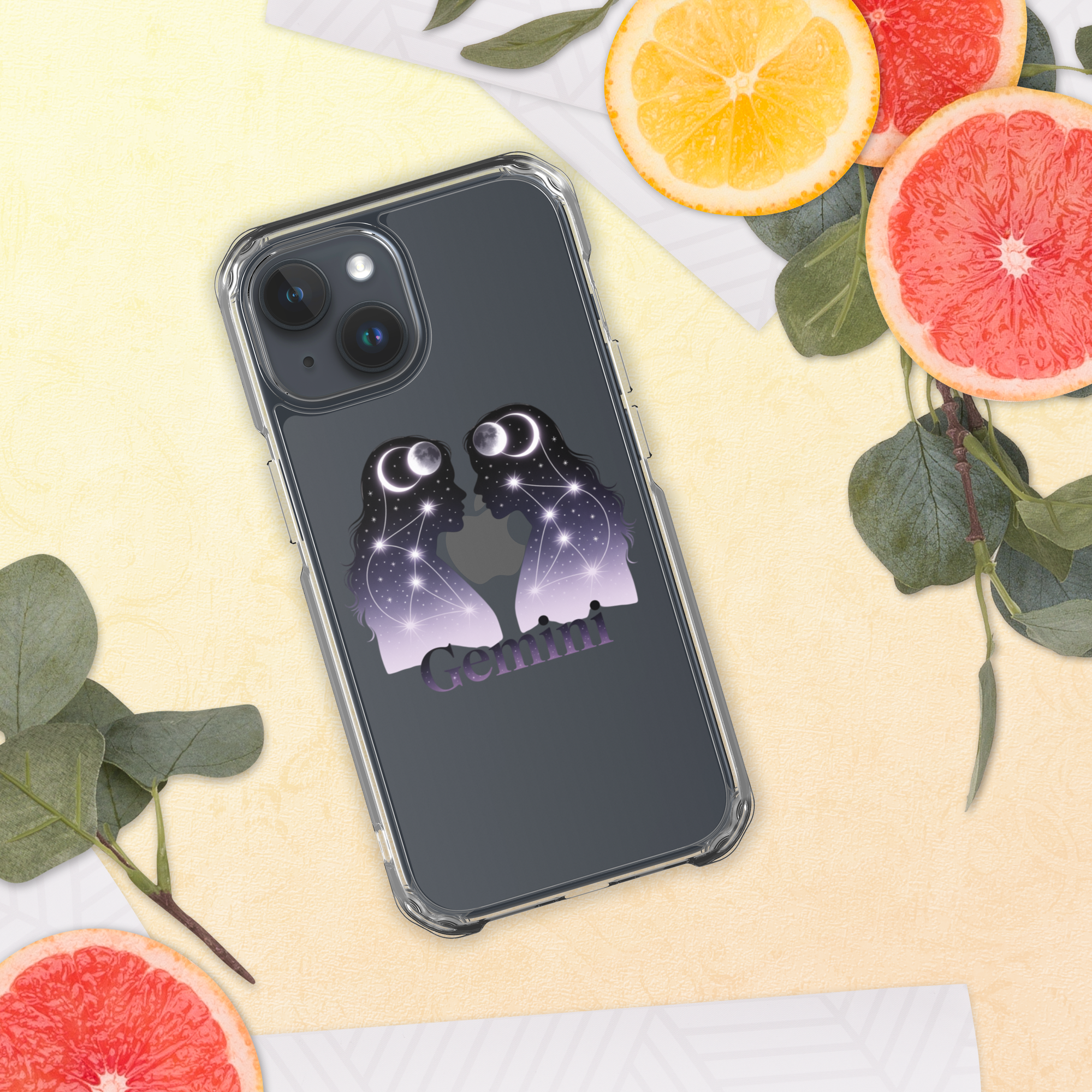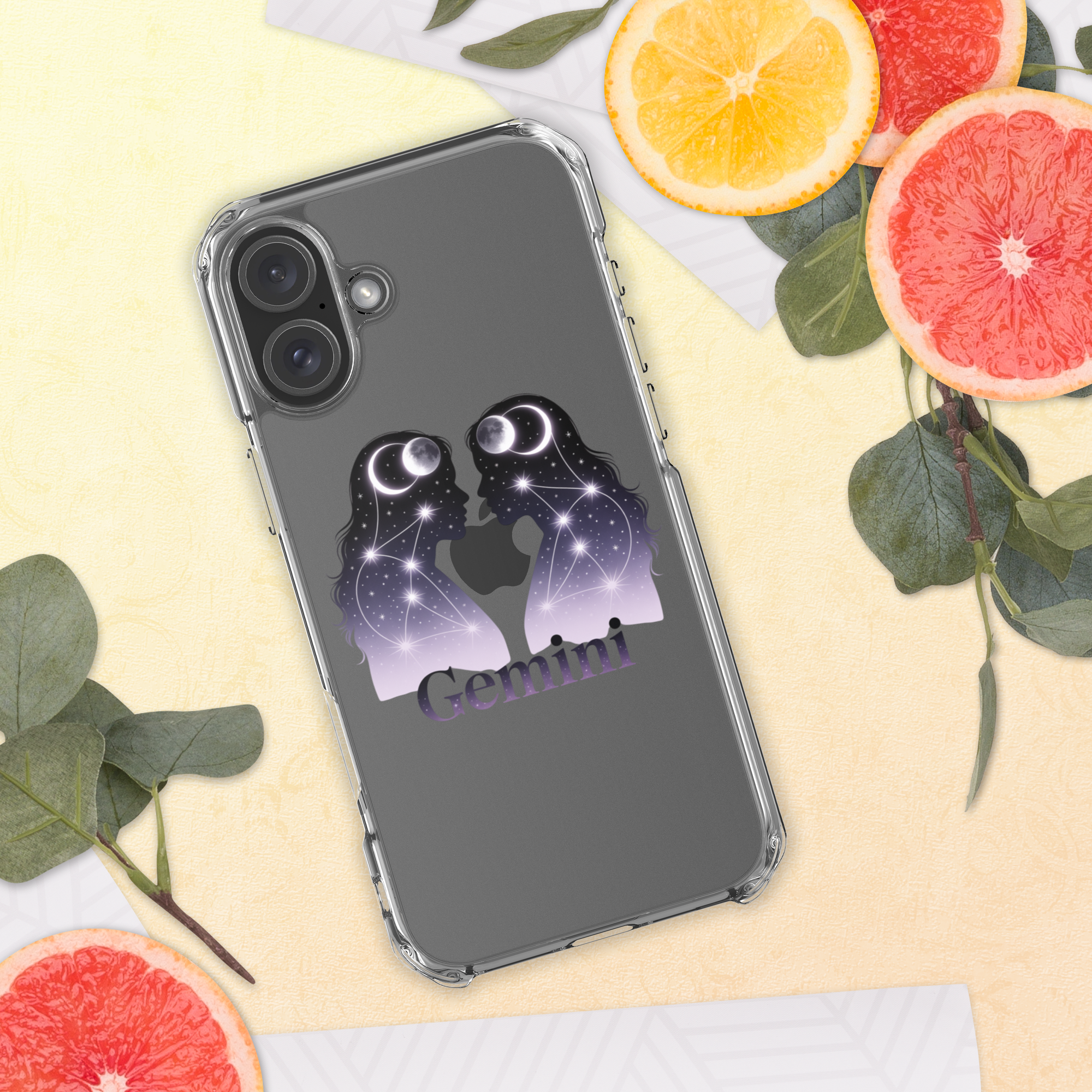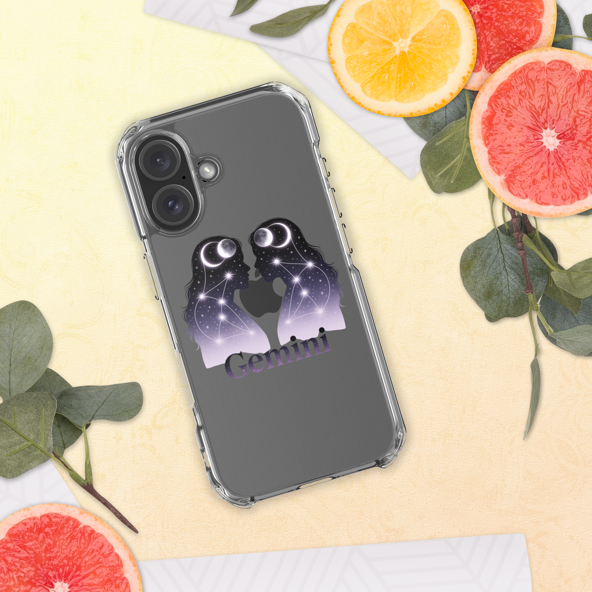 Celebrate duality and connection with this radiant Gemini case — glowing twins framed in lunar light and constellation stardust.