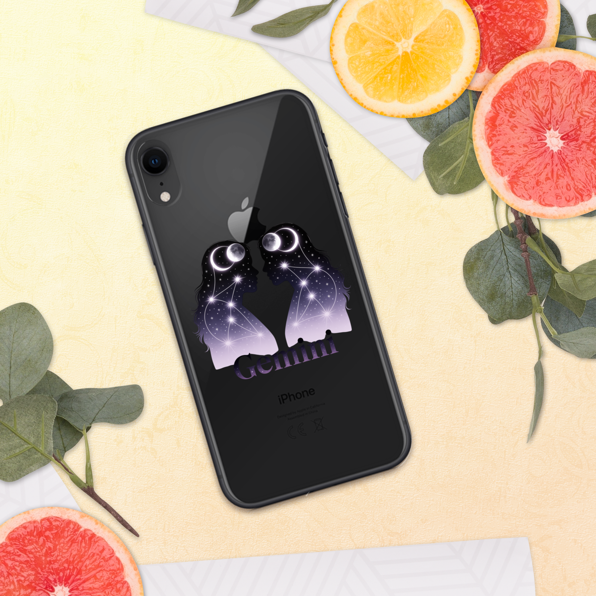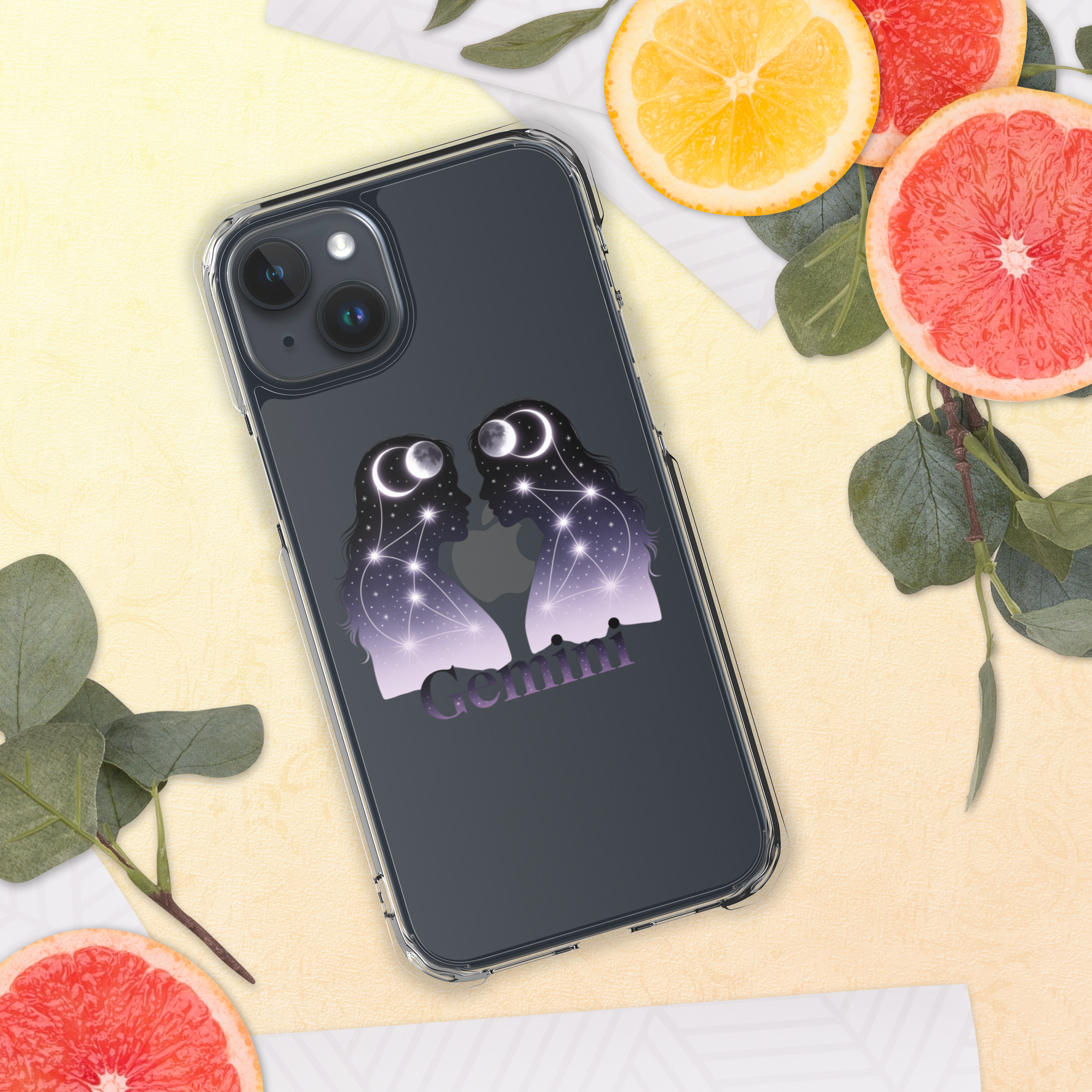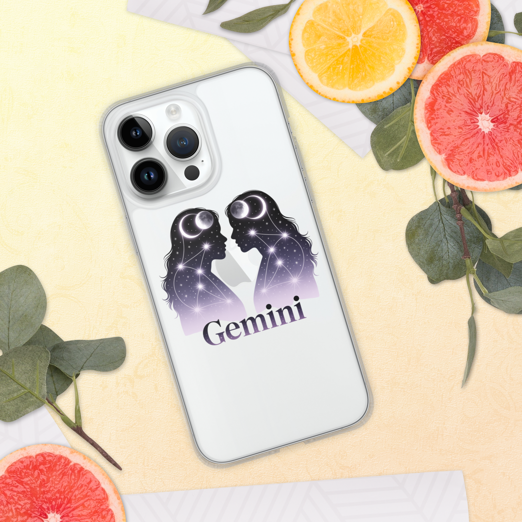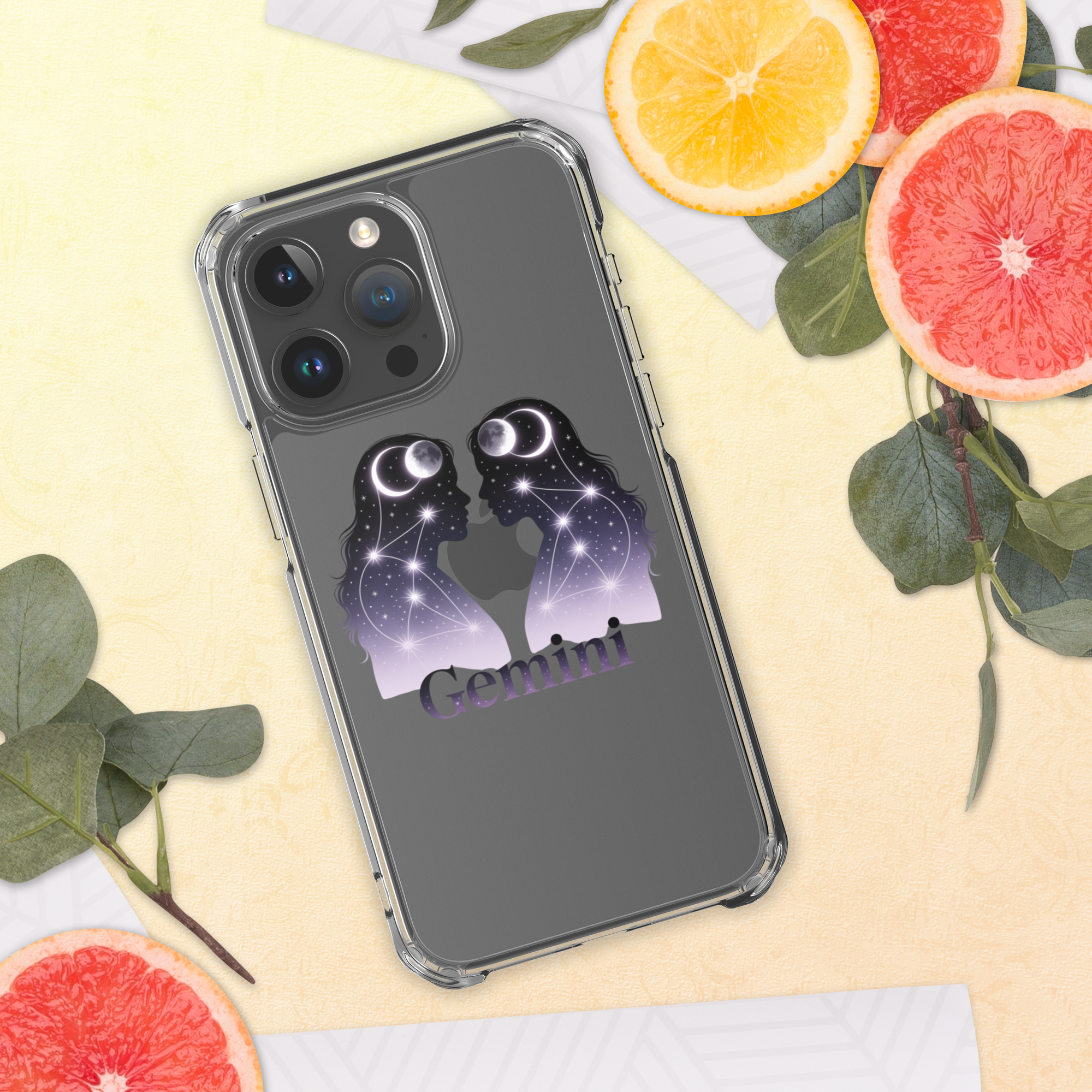 Celebrate duality and connection with this radiant Gemini case — glowing twins framed in lunar light and constellation stardust.