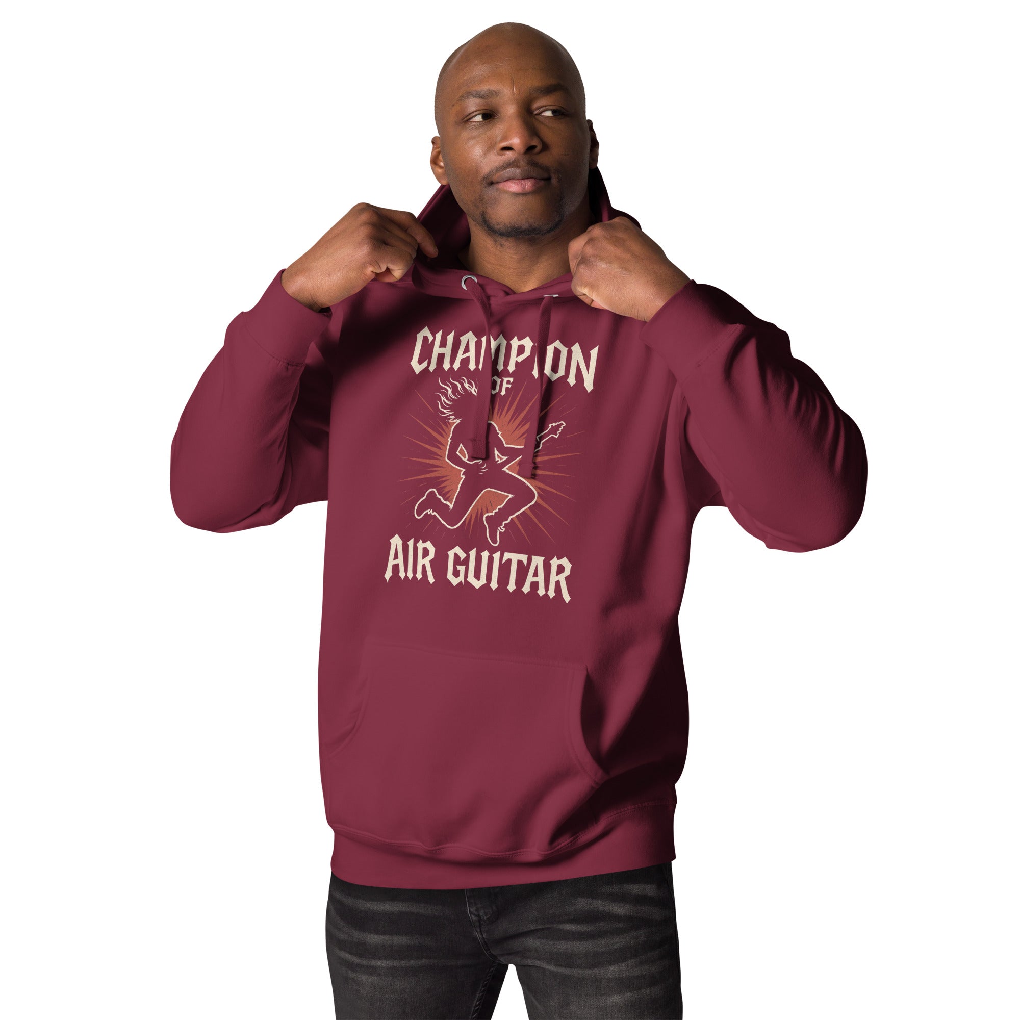 Step into your imaginary spotlight with the Champion of Air Guitar Hoodie – a tribute to every bedroom rocker and stage-diving dreamer. Featuring a dynamic silhouette of a headbanging guitarist mid-air, this design pulses with throwback energy and underground gig vibes. Whether you're jamming solo or just vibing to your playlist, this hoodie shouts one thing loud and proud: you're born to shred—even without a guitar.