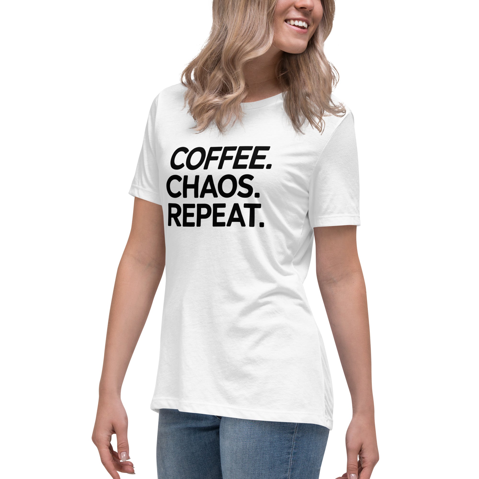 Coffee Chaos Repeat Tee โ€“ Bold Black Statement