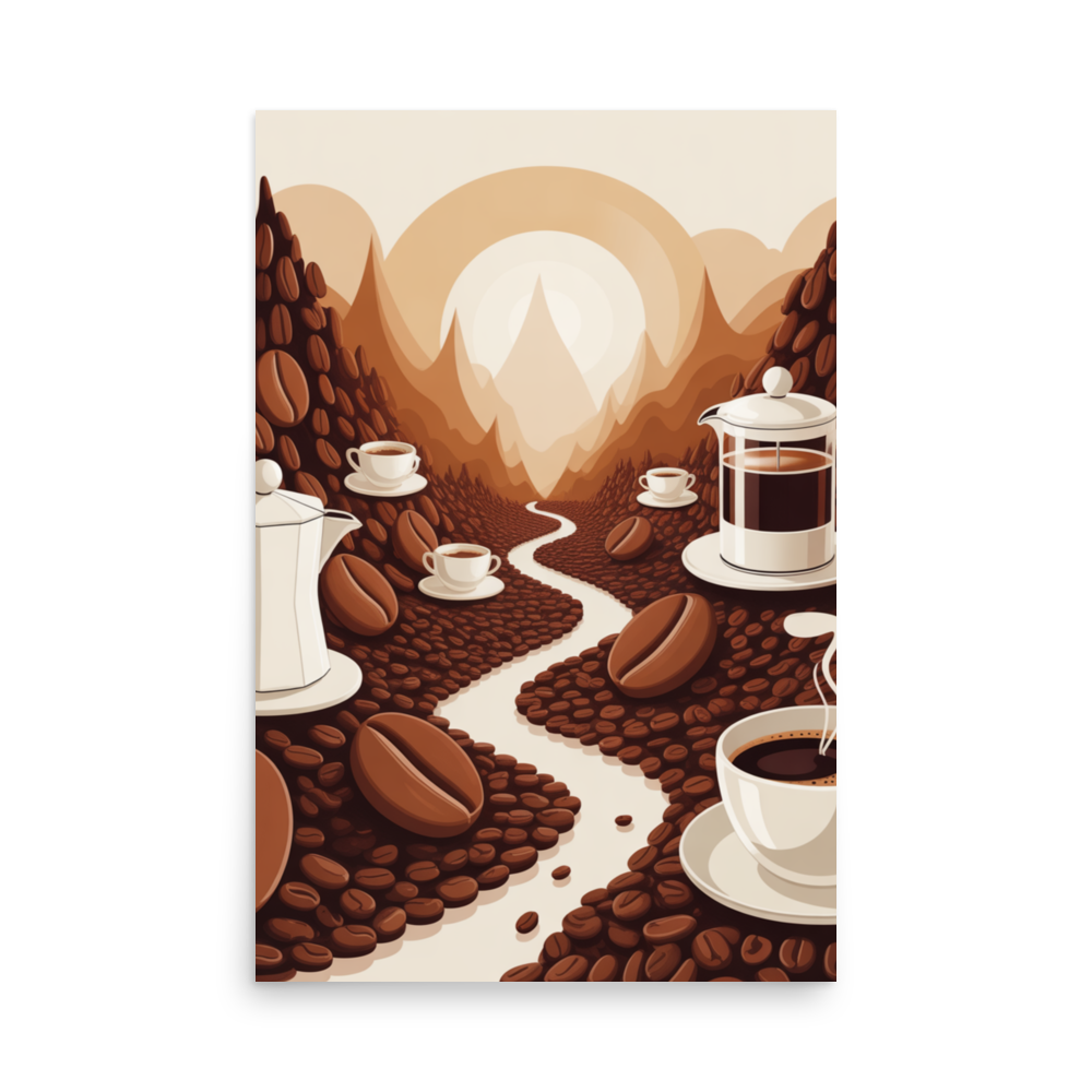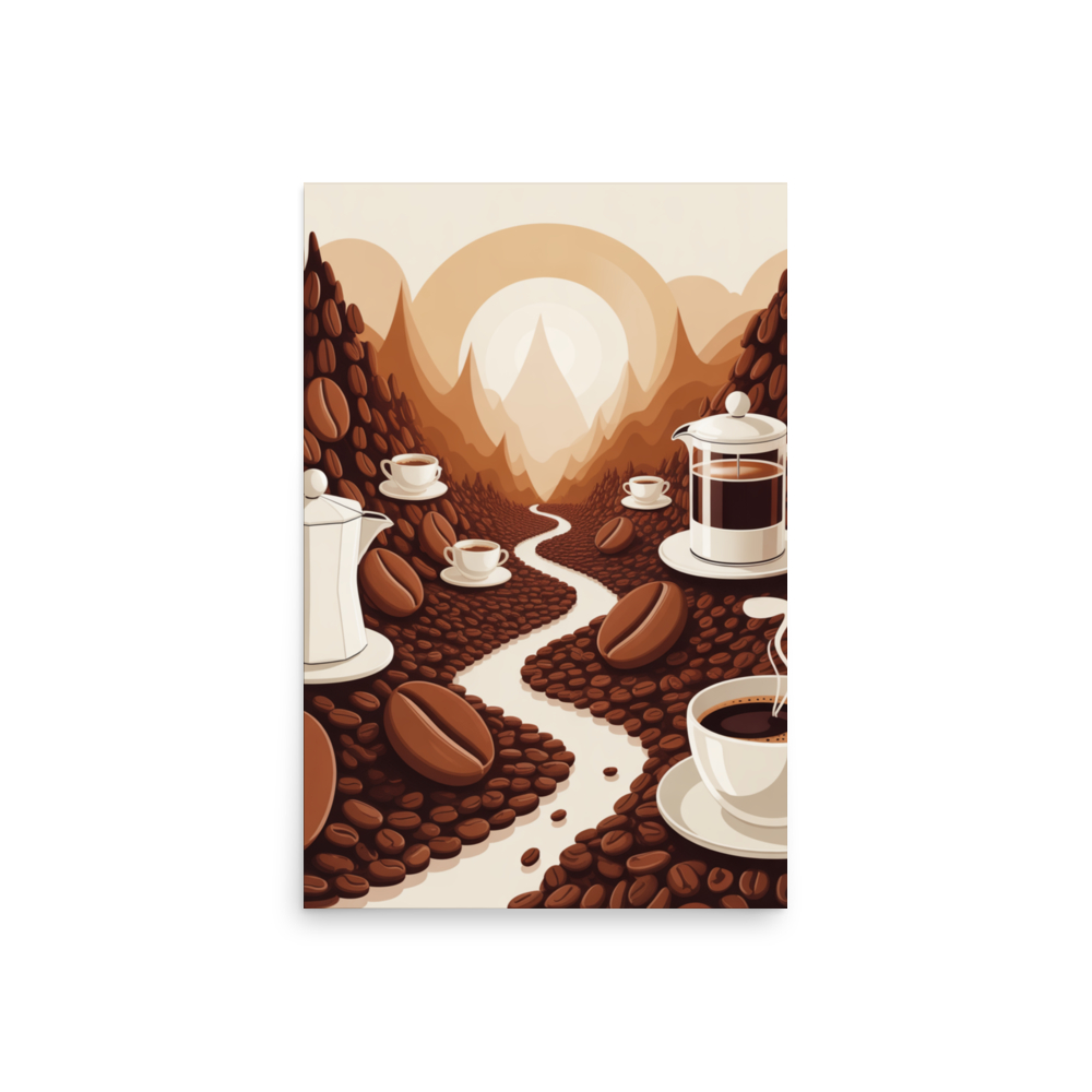 Where mountains are made of beans and rivers run with roast — this rich and dreamy landscape art is for those who dream in espresso.