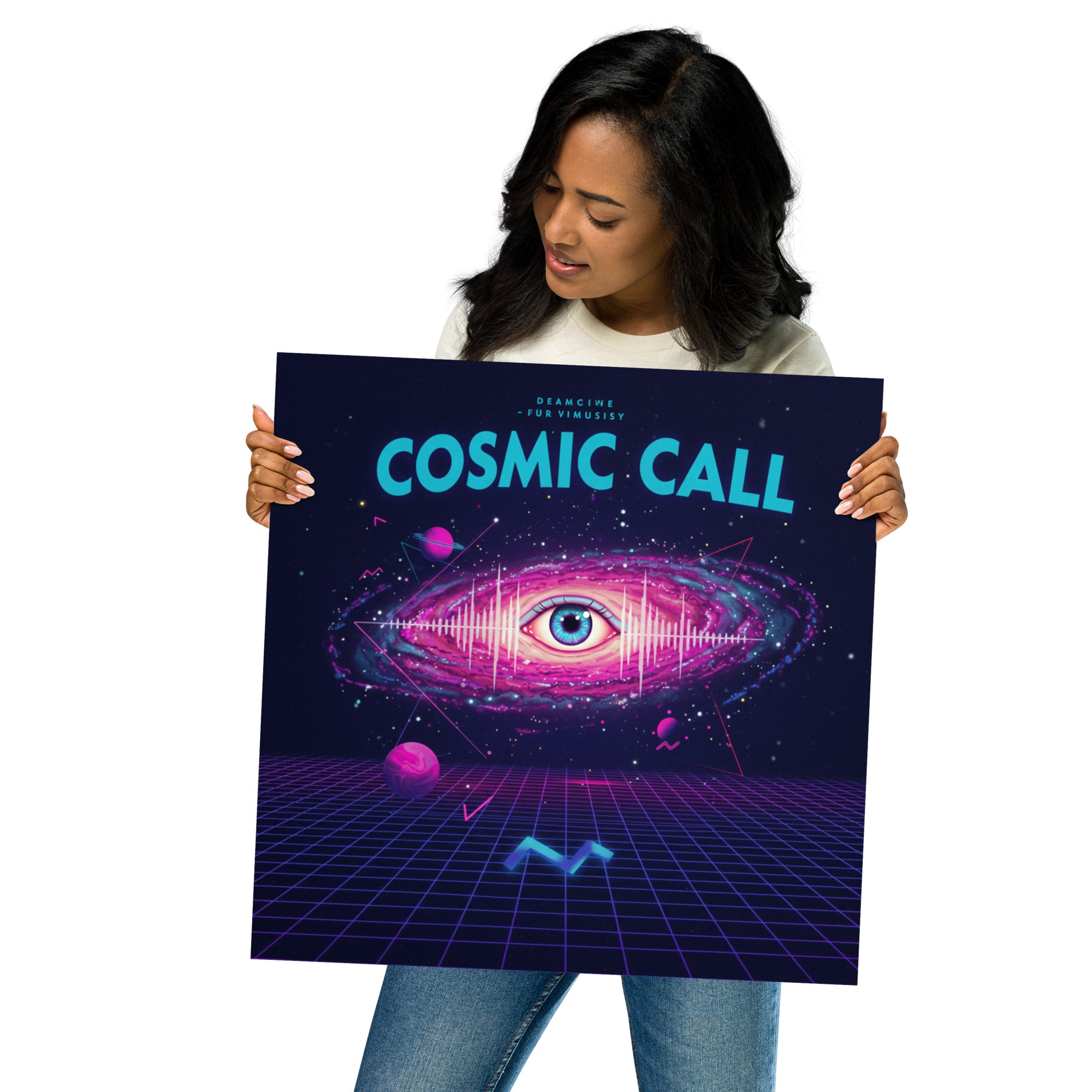 A surreal eye echoes through the galaxy, transmitting music and mystery in a cosmic grid.
