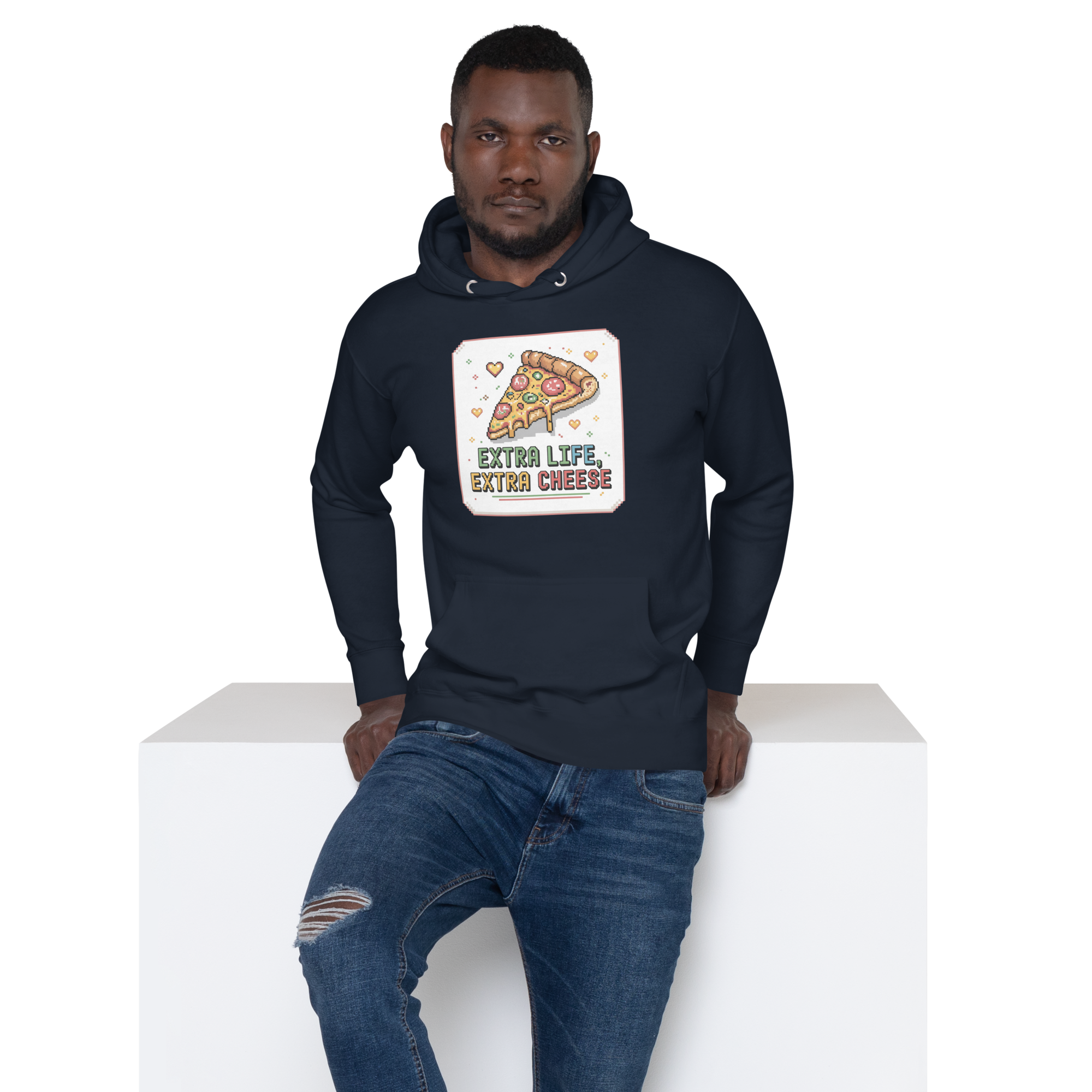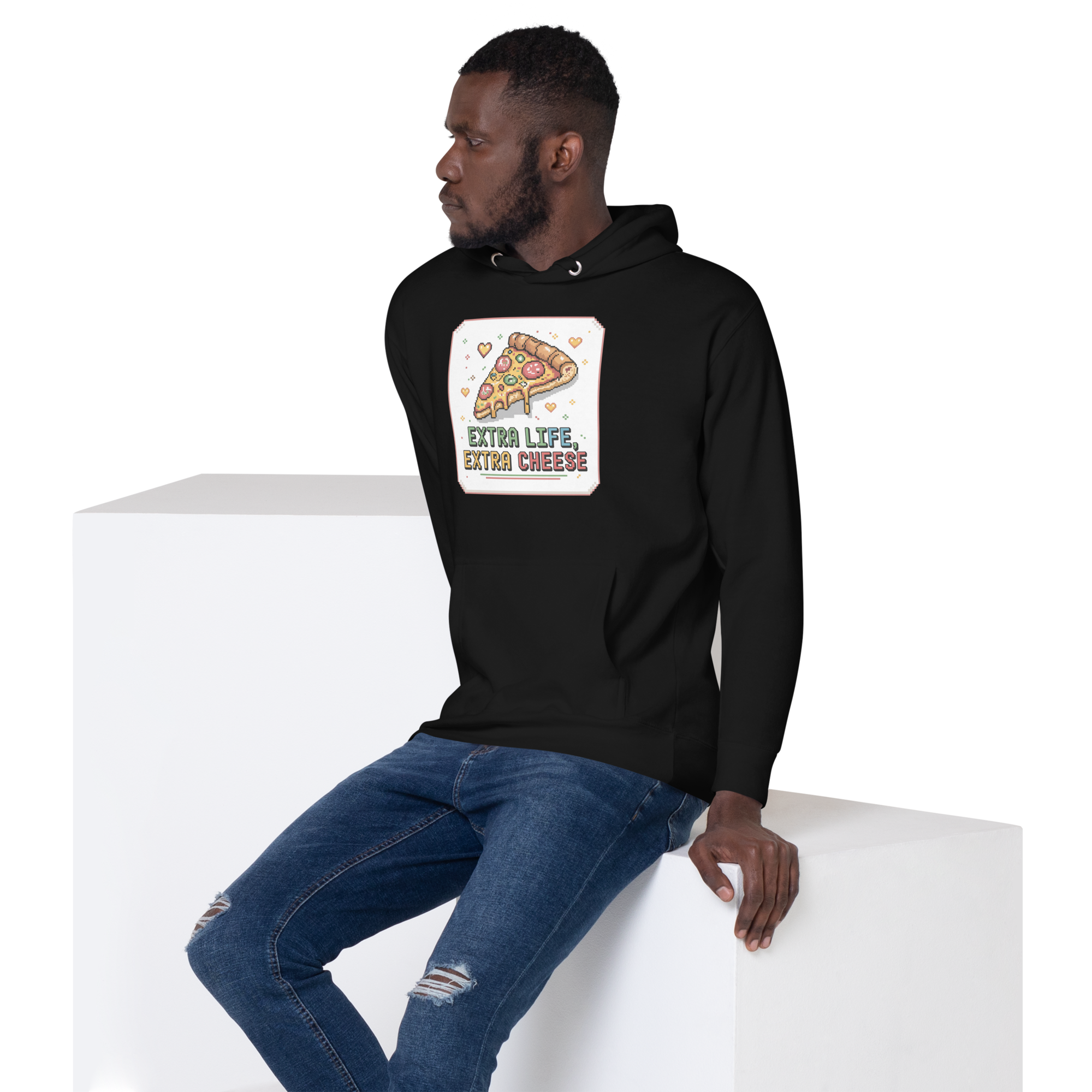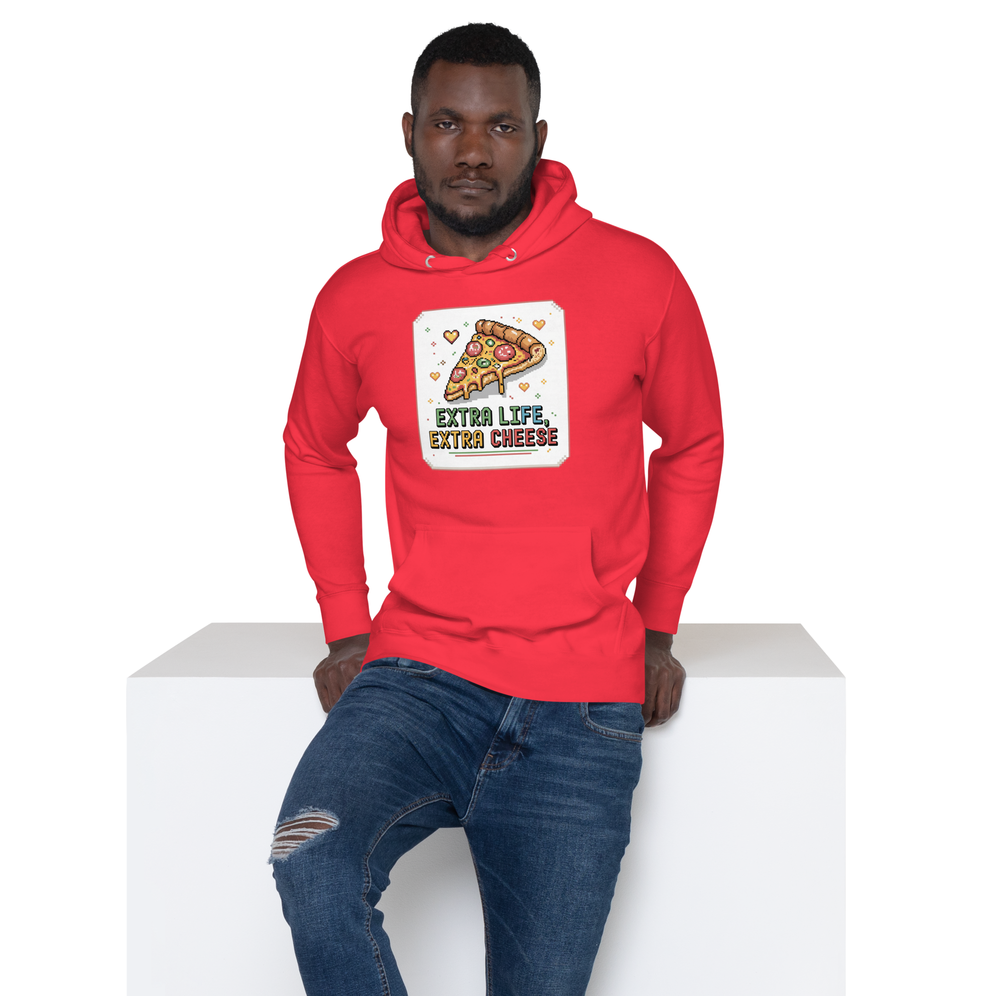 The Extra Life Extra Cheese Hoodie combines your two greatest passions: gaming and pizza! With its colorful cheesy slice and gamer flair, it’s perfect for players who know extra toppings = extra power-ups.