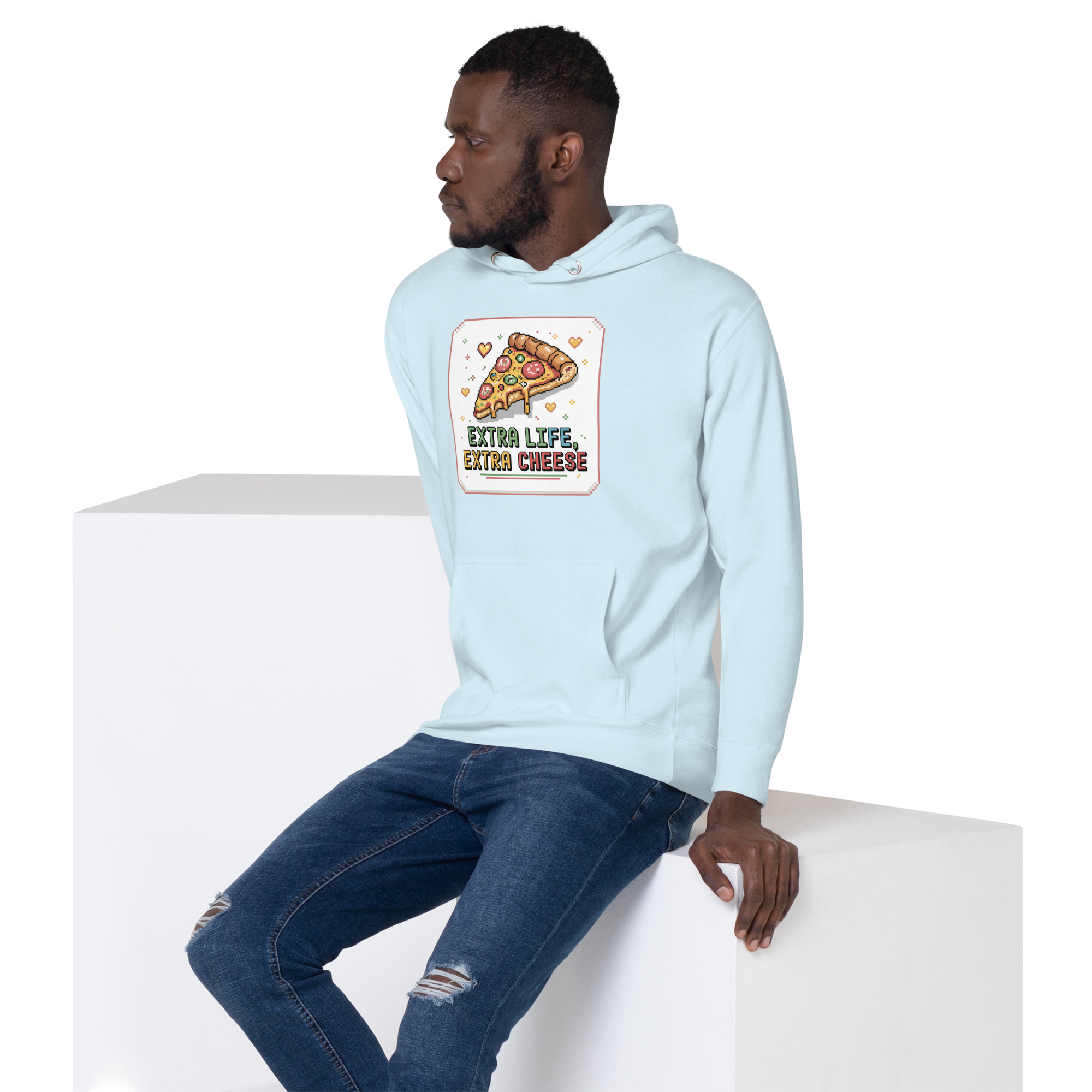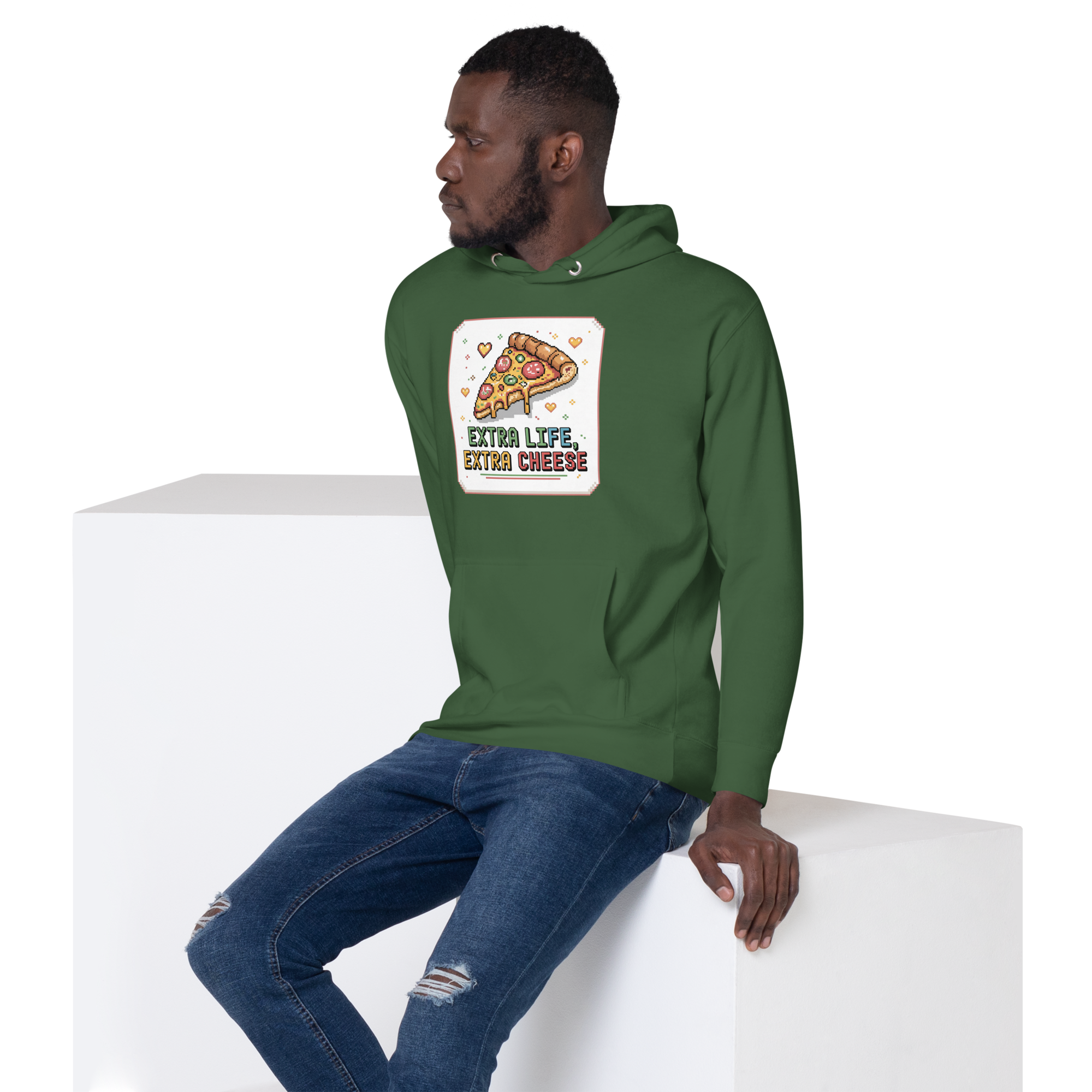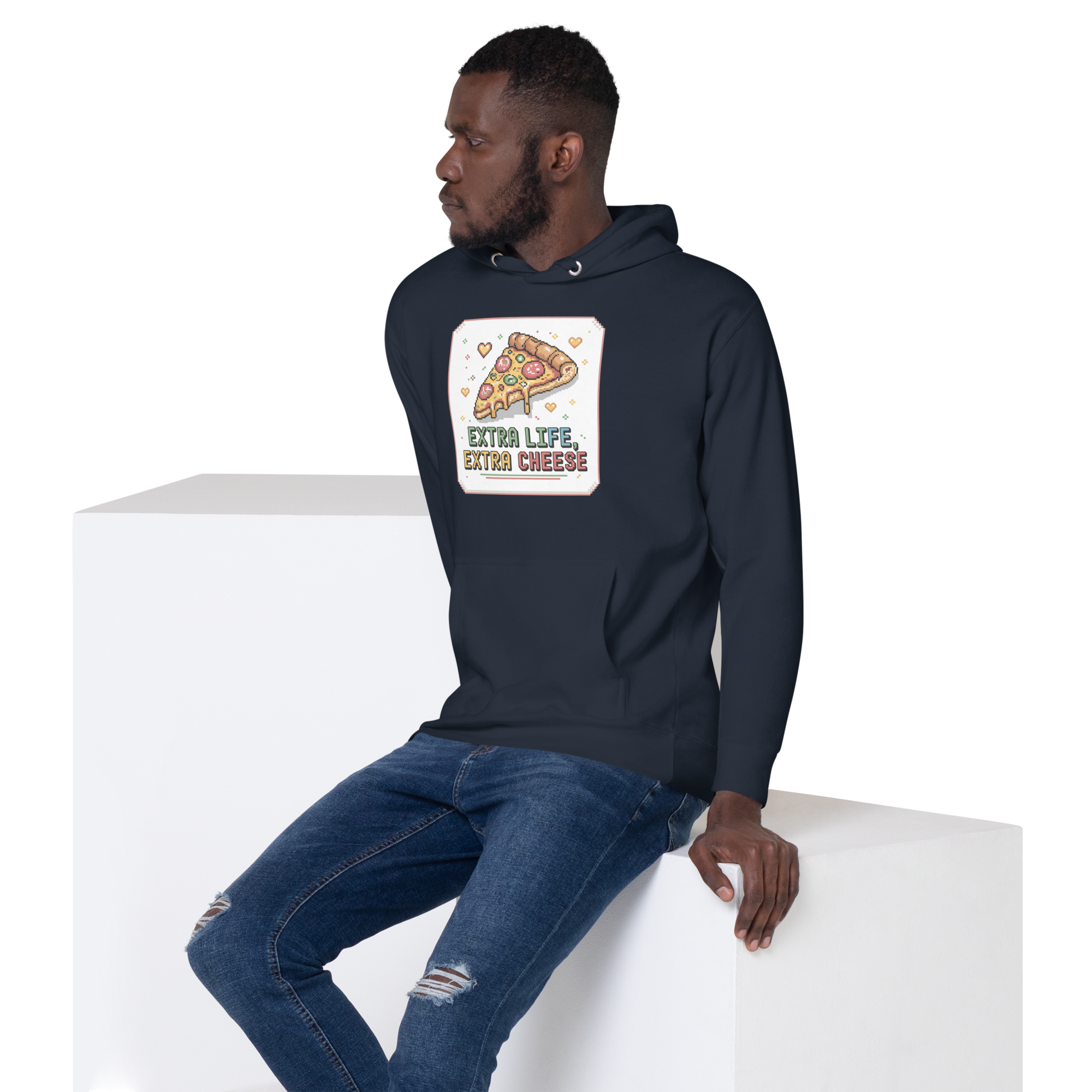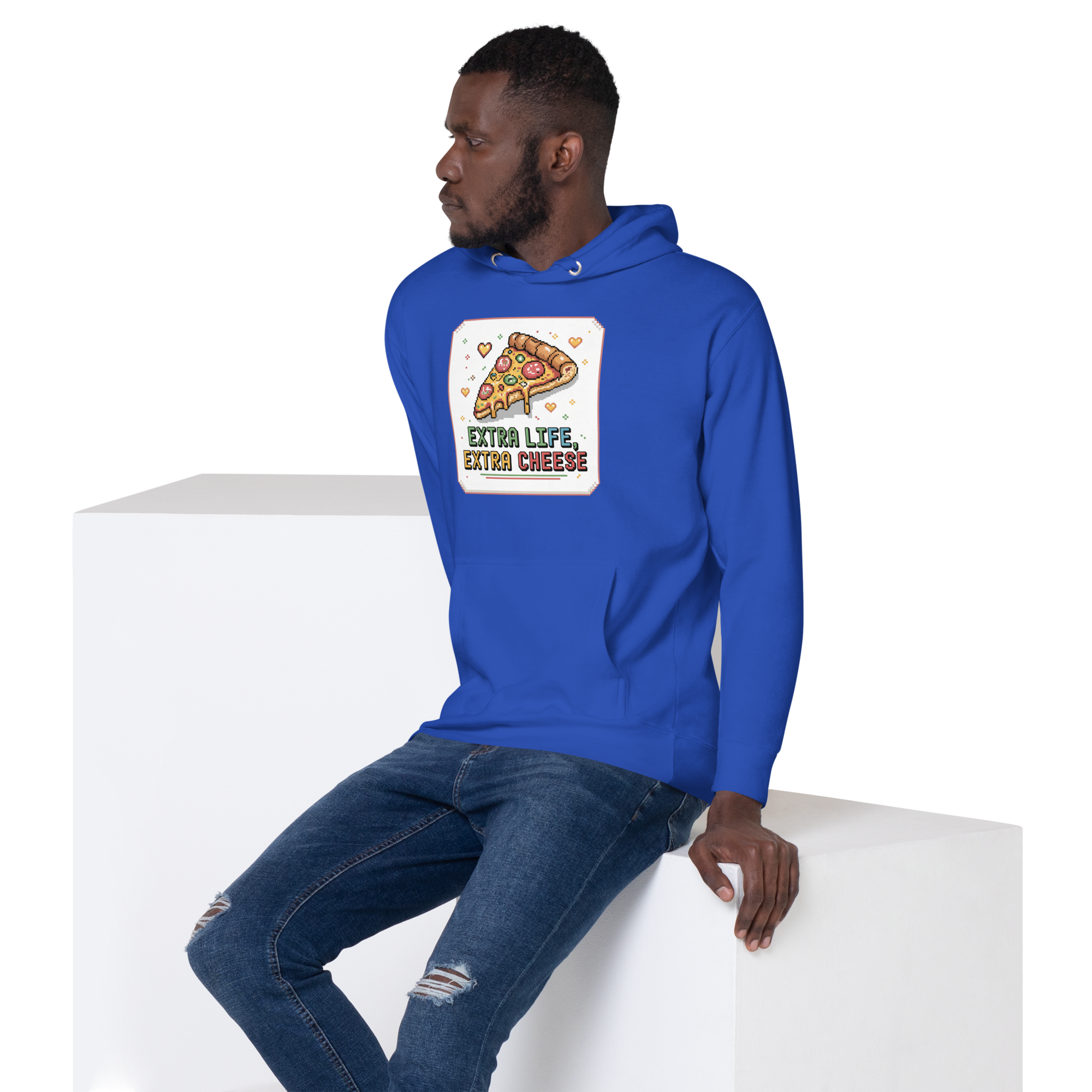 The Extra Life Extra Cheese Hoodie combines your two greatest passions: gaming and pizza! With its colorful cheesy slice and gamer flair, it’s perfect for players who know extra toppings = extra power-ups.