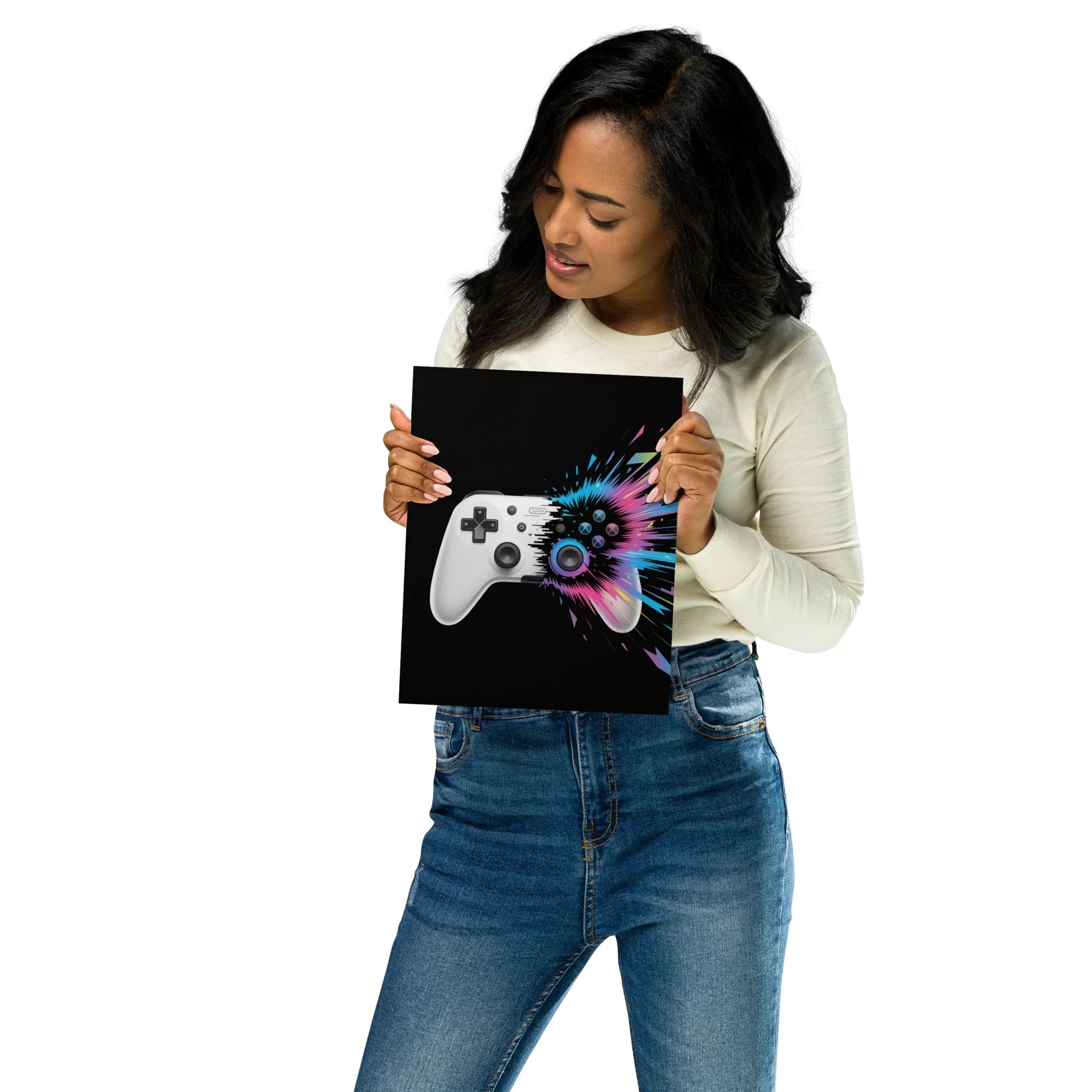Featuring a sleek controller bursting into a wave of neon and digital fragments, this gamepad explosion art print captures the pulse of modern play and creativity. Designed for tech gaming wall decor lovers, streamers, and esports enthusiasts, it’s a visual metaphor for control, precision, and the adrenaline rush of competition.