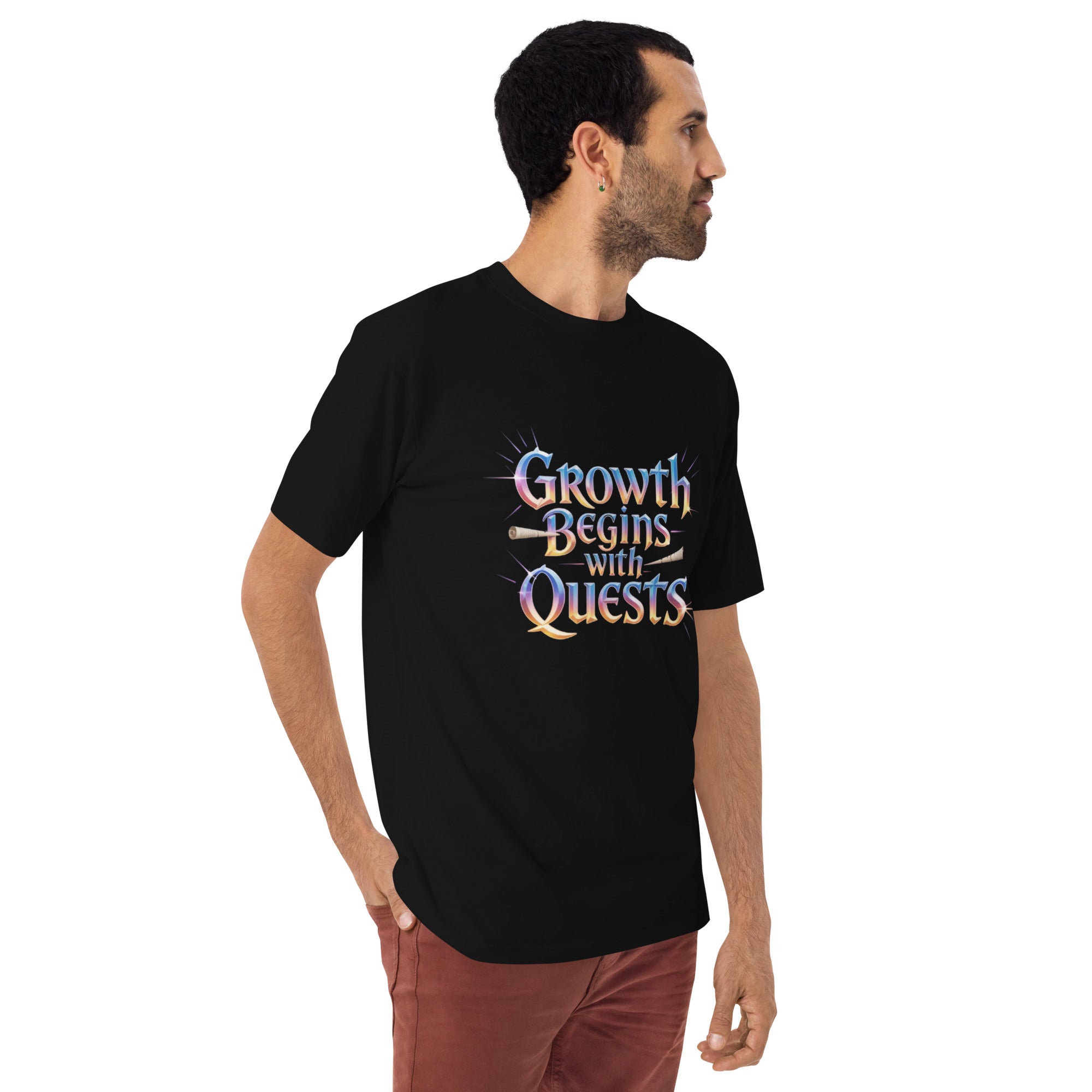 Level up your wardrobe with the Growth Begins with Quests T-Shirt. Inspired by classic Western RPG adventures, this shirt celebrates the journey of progress through quests and challenges.