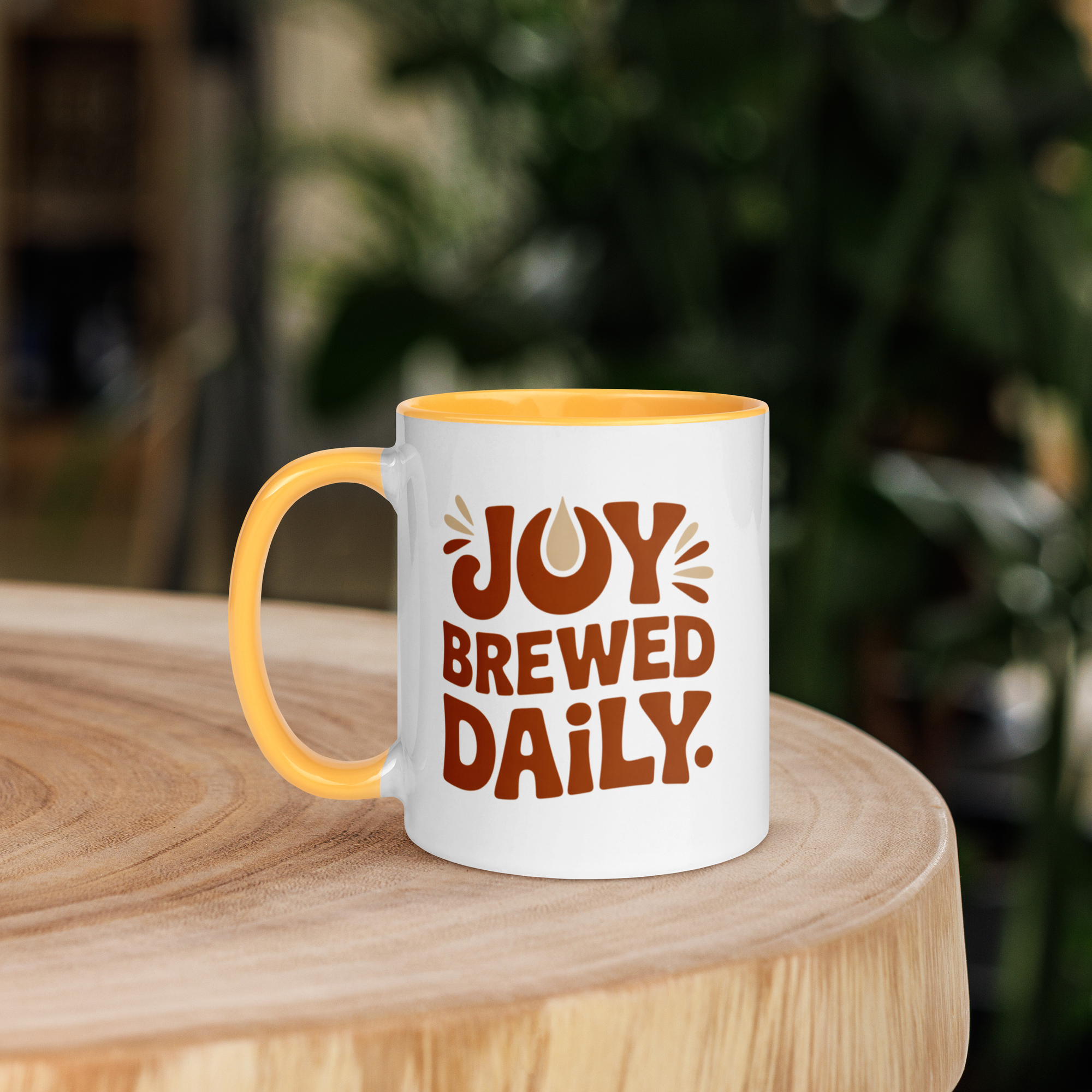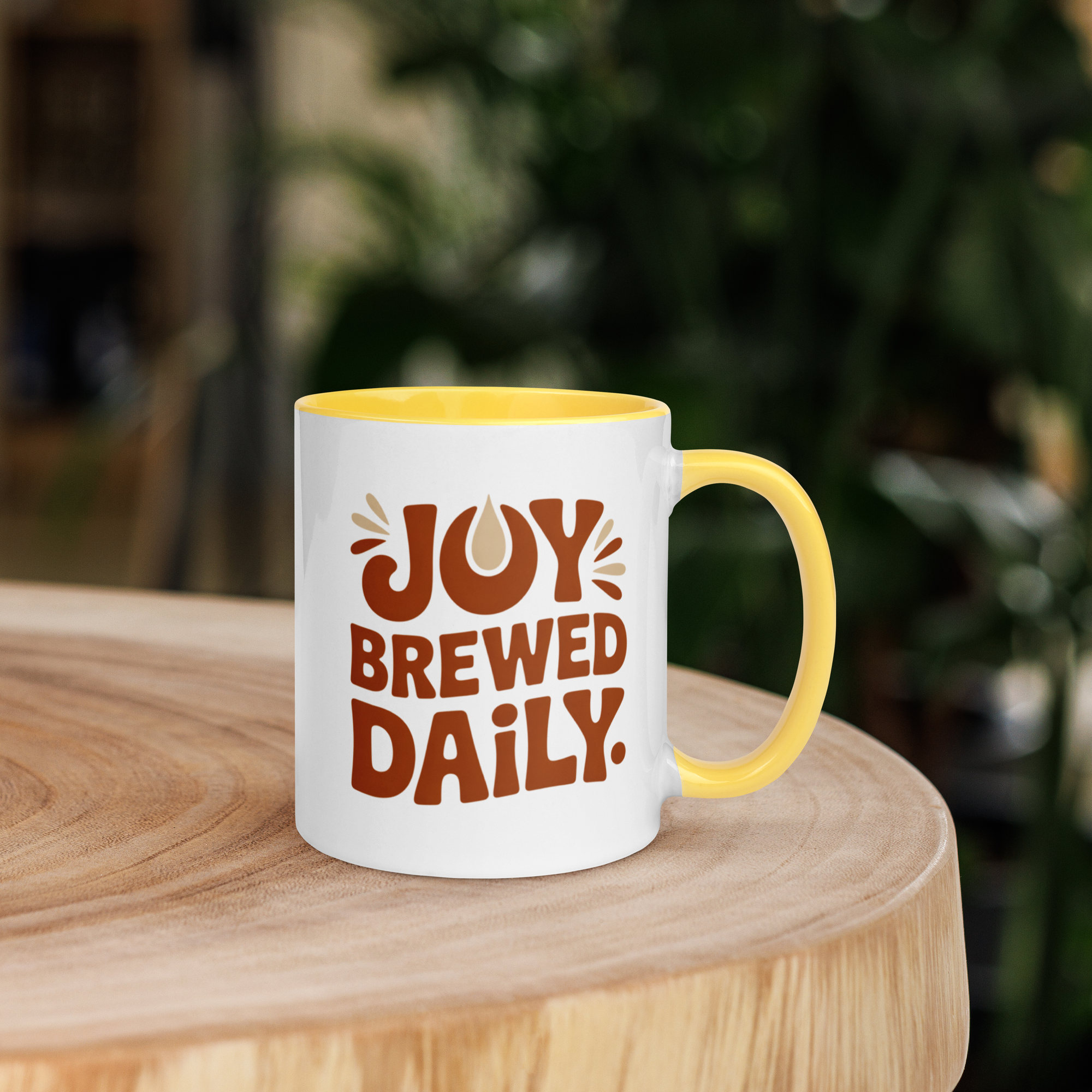 Start your mornings with a dose of joy — literally. The “Joy Brewed Daily” ceramic mug blends warmth and playfulness with bold retro typography and a cheerful color palette. Whether it’s your first coffee or midday tea, this mug is designed to uplift your day in style.