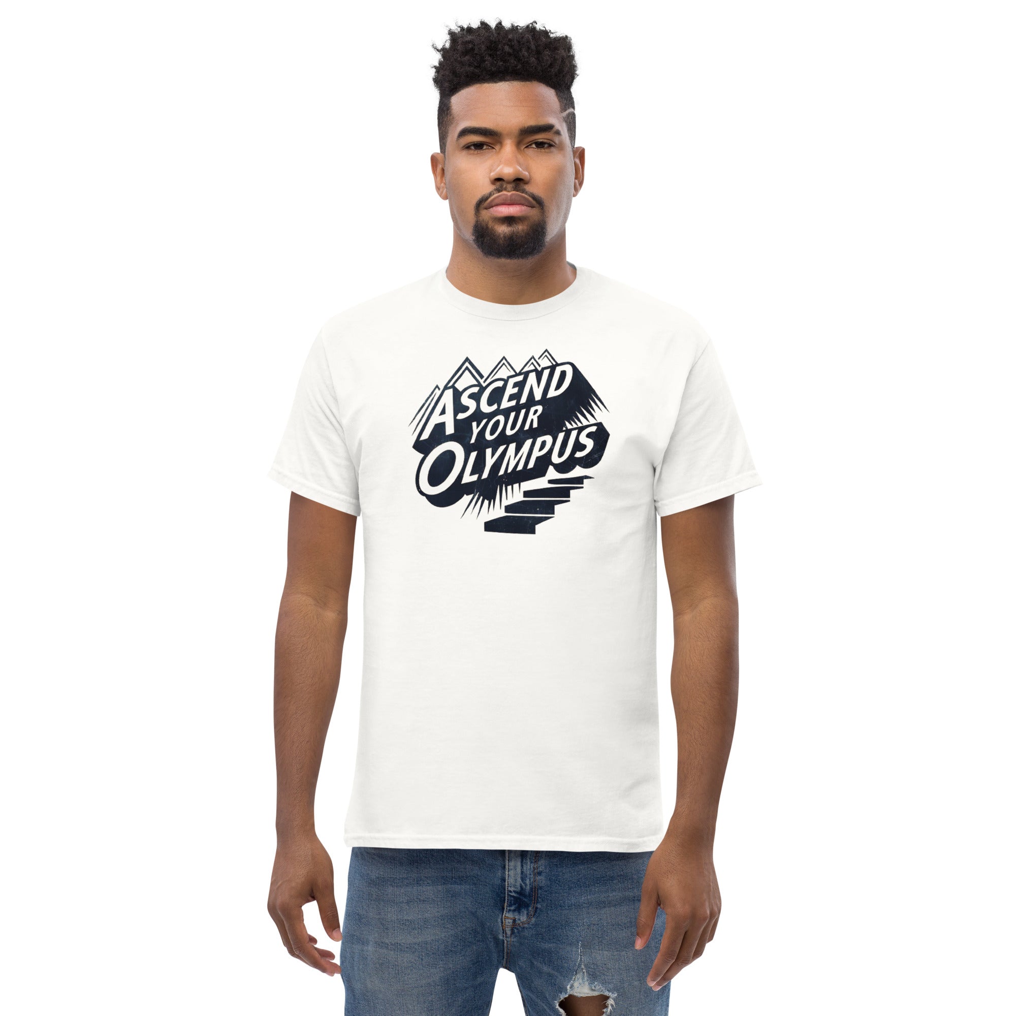 Rise higher with purpose. The Ascend Your Olympus design merges mythic ambition with modern drive, turning everyday wear into a bold reminder to climb toward your own peak.
