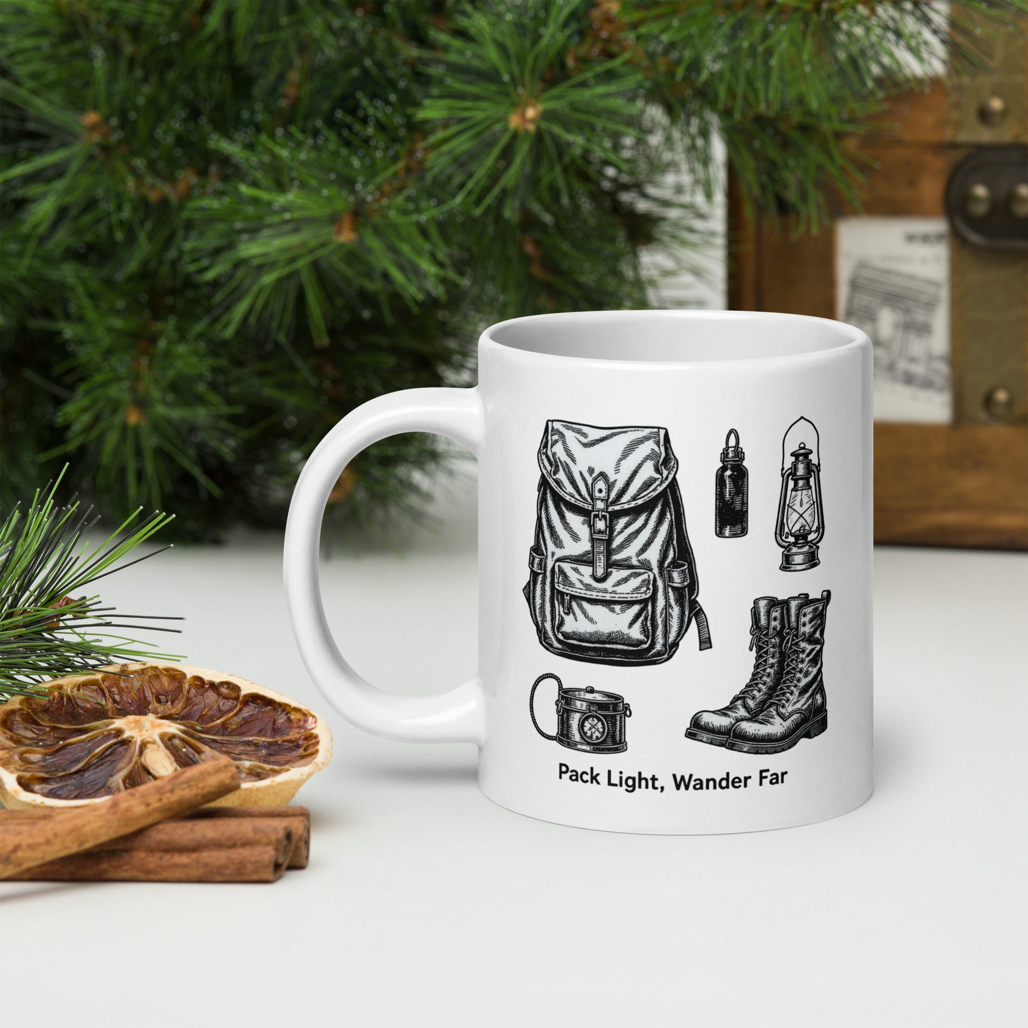 Pack Light, Wander Far – Vintage Hiking Gear Ceramic Mug