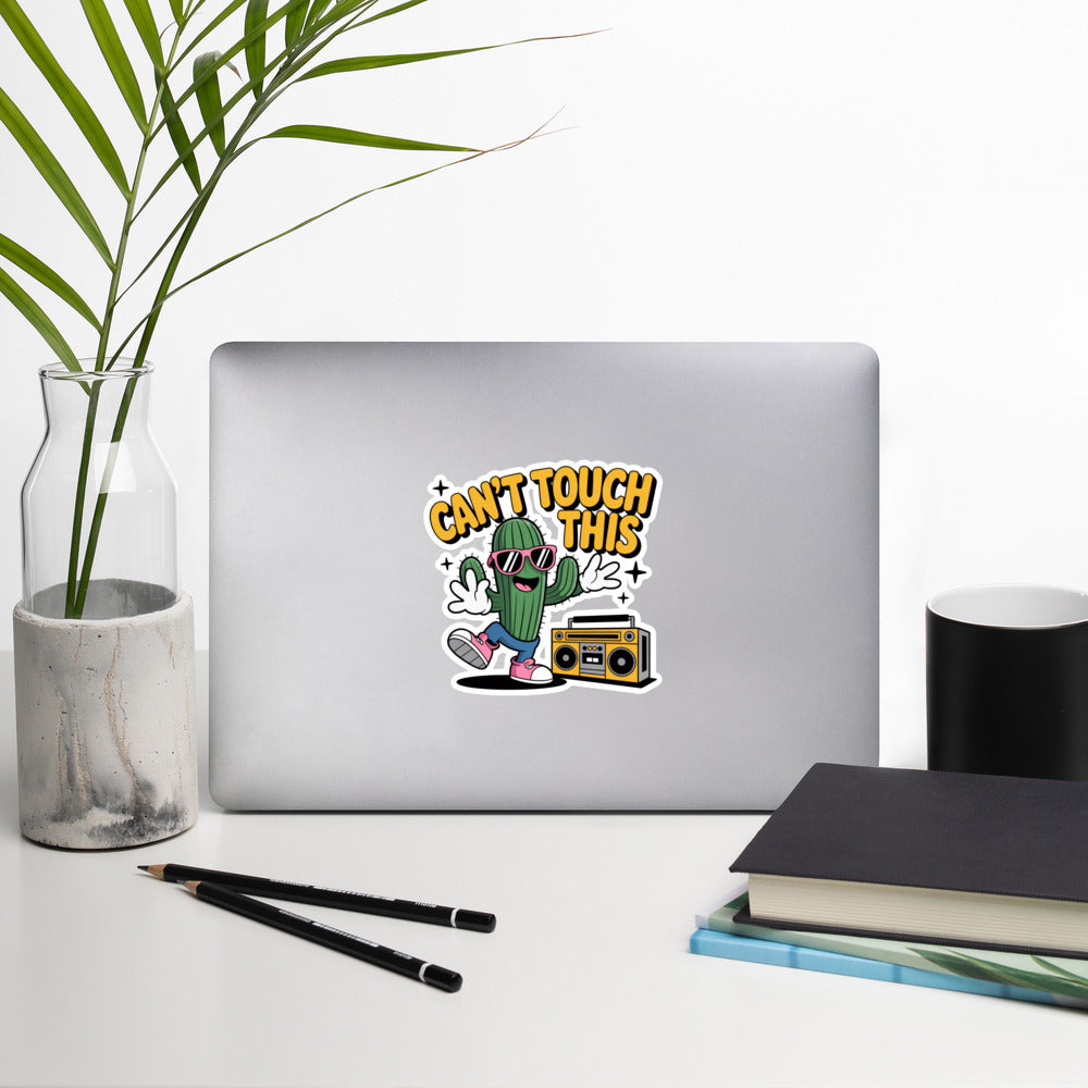 Turn any surface into a retro dance floor with this vibrant β€œCan’t Touch This” cactus sticker. Styled with shades, sneakers, and that old-school boombox energy, it's the perfect playful pop for laptops, bottles, and more. Unapologetically funky, just like your vibe.