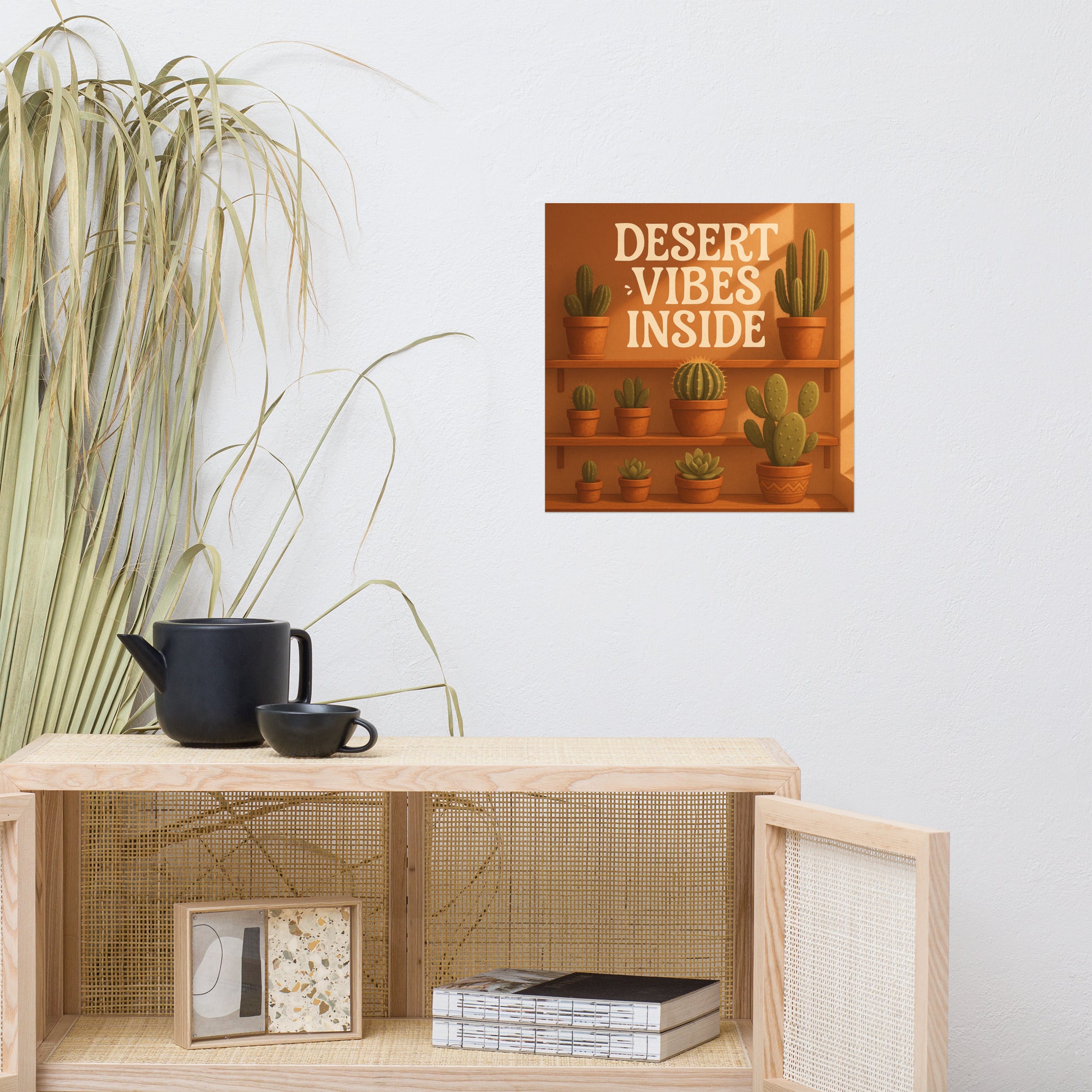 Bring desert calm into your space with this warm-toned cactus art print. Featuring terracotta pots and sunlight pouring over a beautiful shelf of succulents, it’s the perfect minimalist-boho blend for modern interiors.