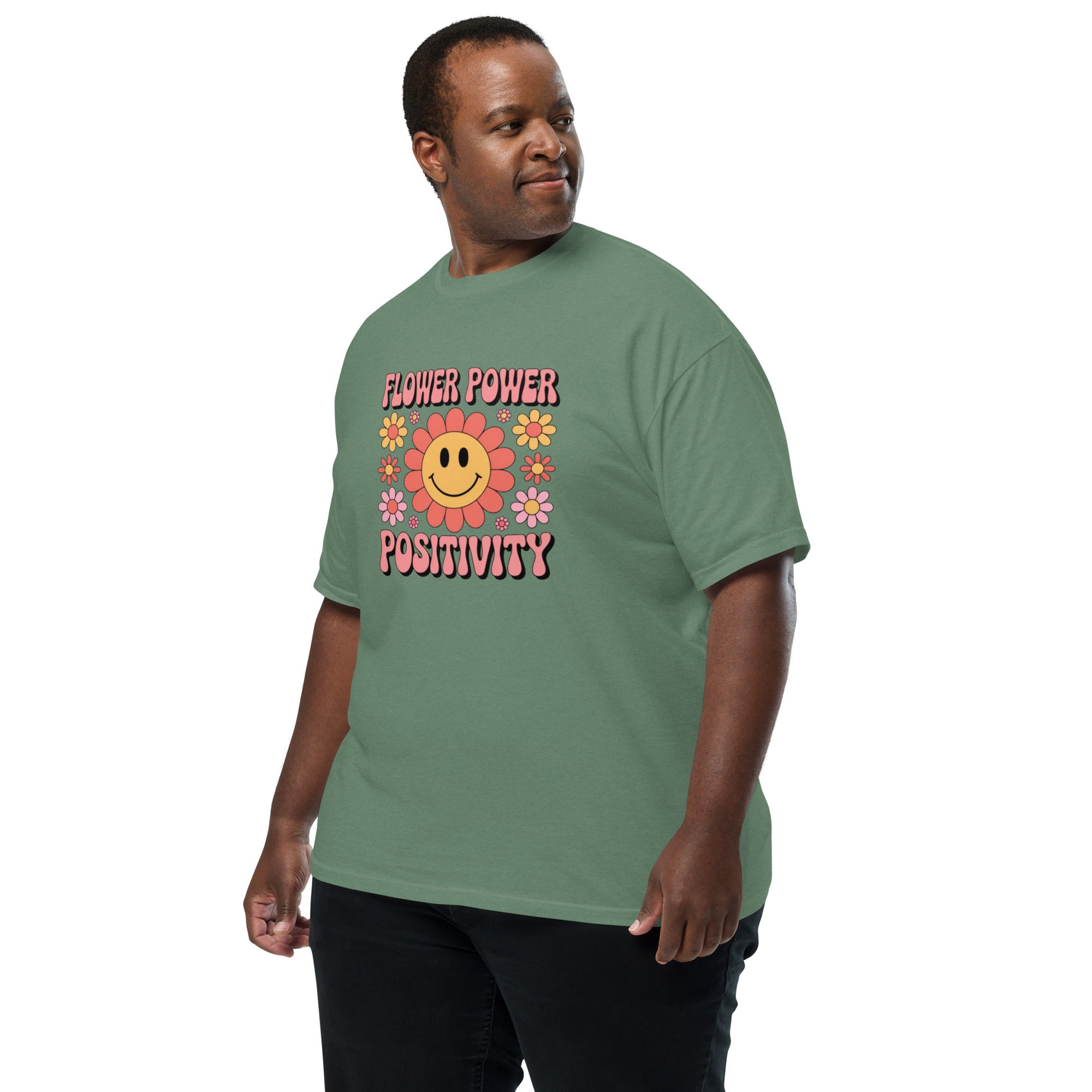 Flower Power Positivity Tee – 70s Smiley Flower Graphic T-Shirt