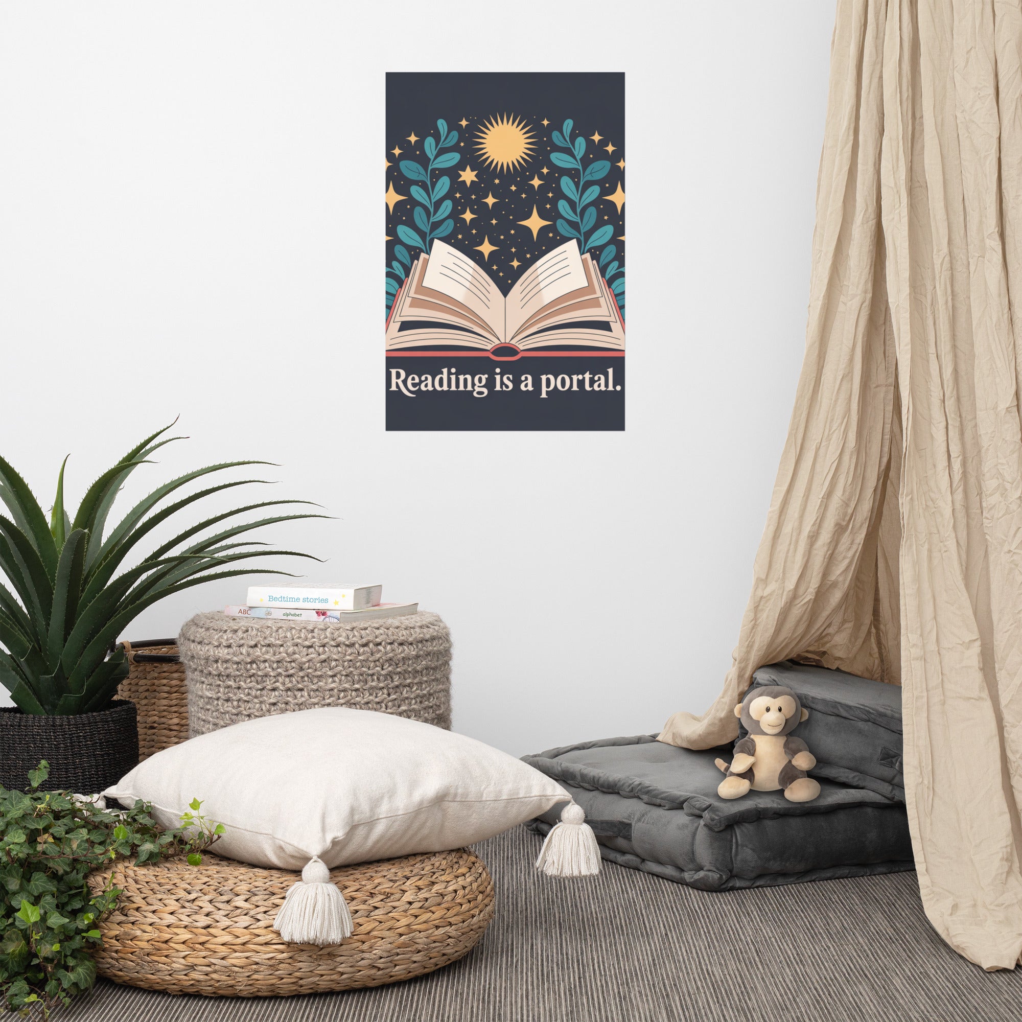 A gateway to stars, stories, and unseen worlds. This magical poster reminds us that every book opens a new universe.