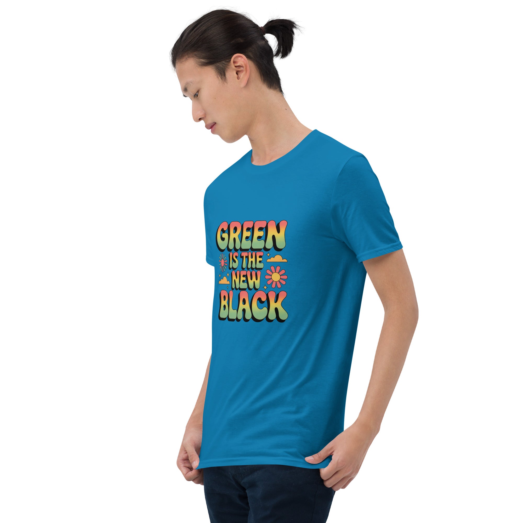 🌿 “Green Is the New Black” retro slogan in bold ombré lettering