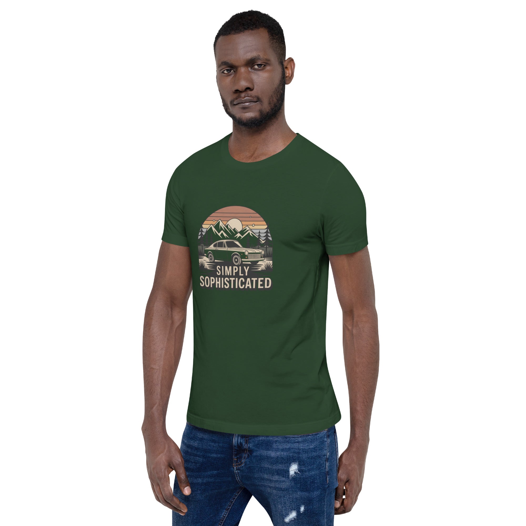 Minimalist, elevated, effortlessly cool. "Simply Sophisticated" blends retro car charm with mountain-backdrop serenity—on a tee that feels as good as it looks.