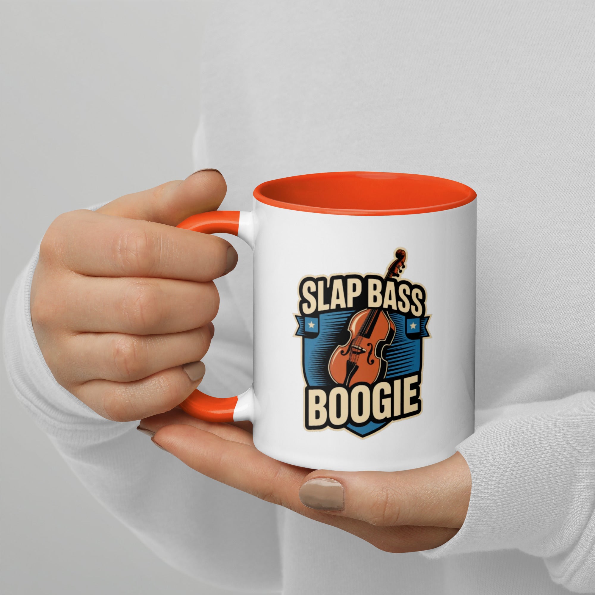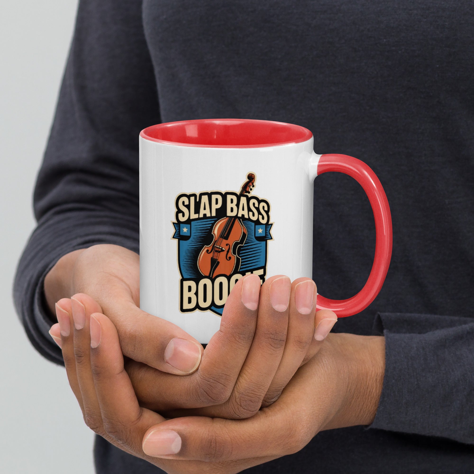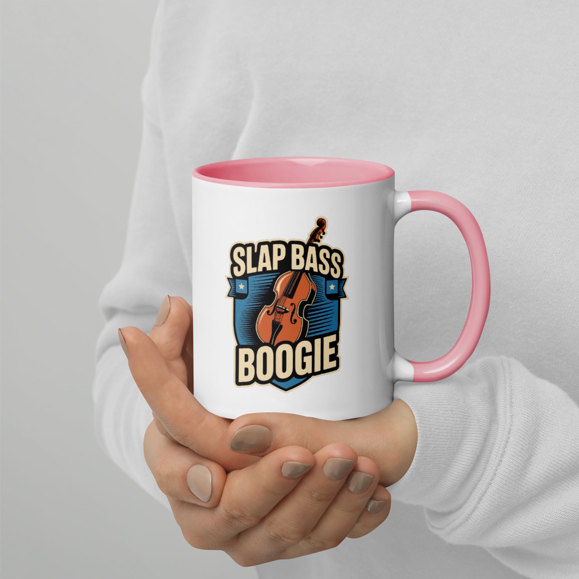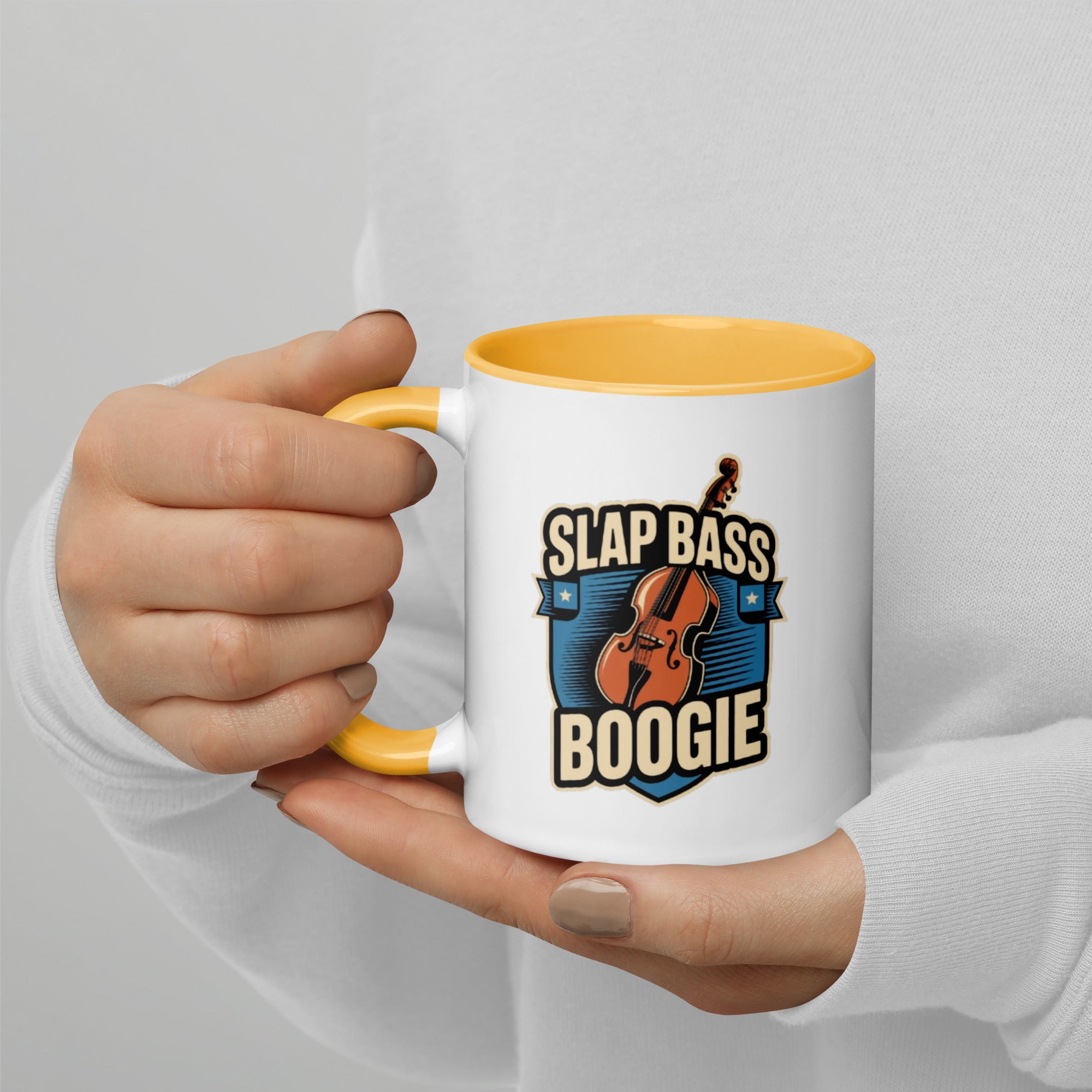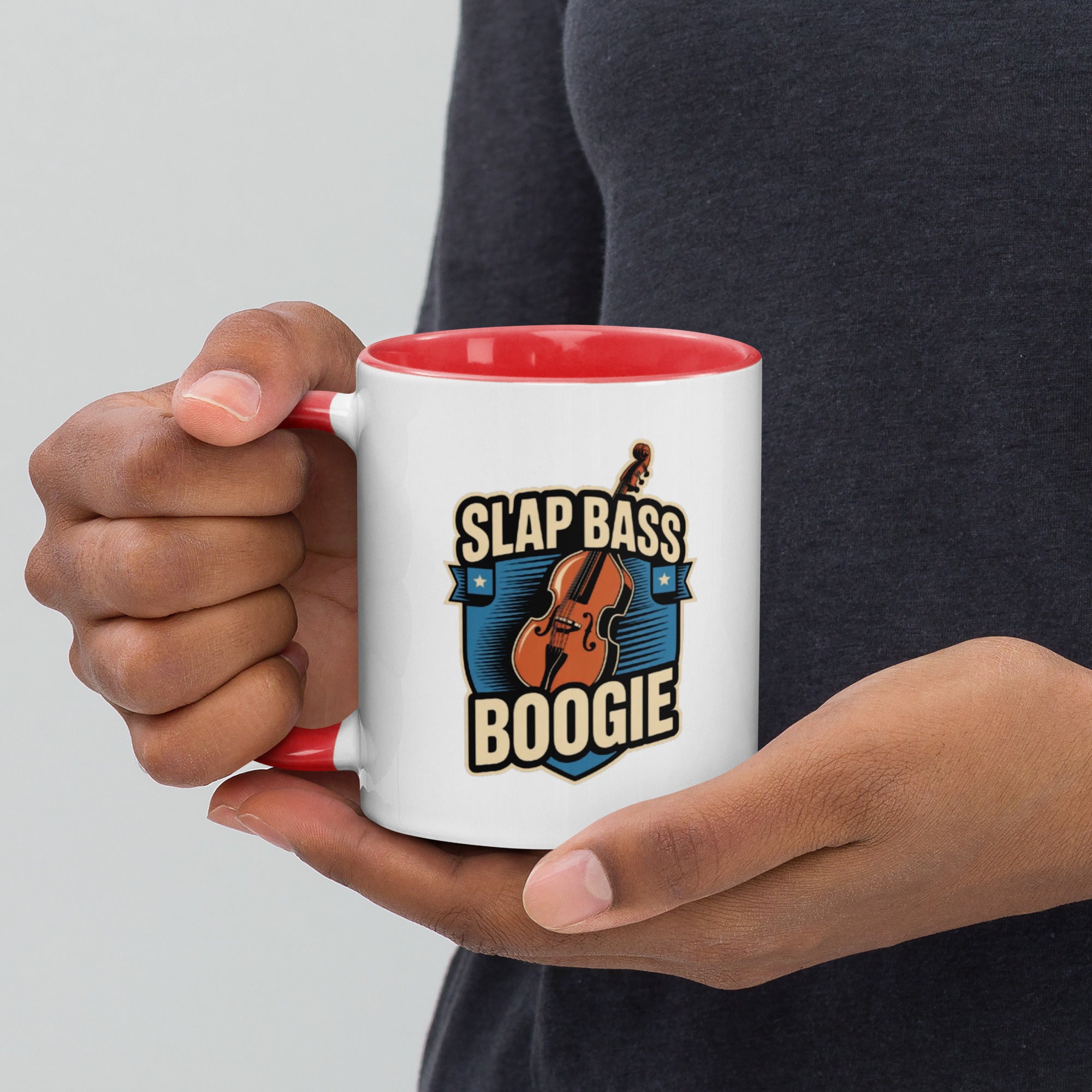 Bring the groove to your daily grind with the Slap Bass Boogie mug. Featuring a bold upright bass and retro shield crest, this design shouts rhythm and blues, perfect for musicians and music lovers alike.
