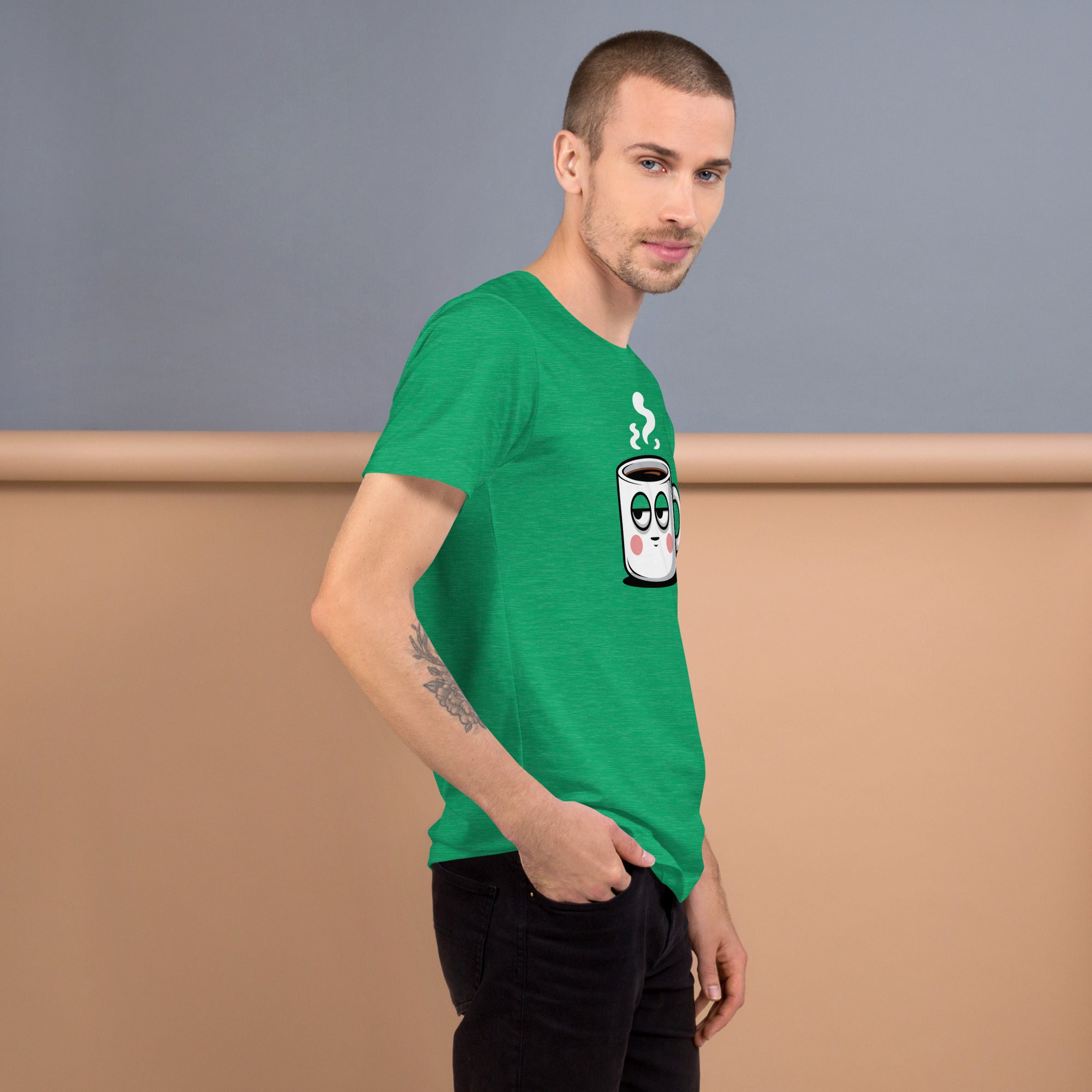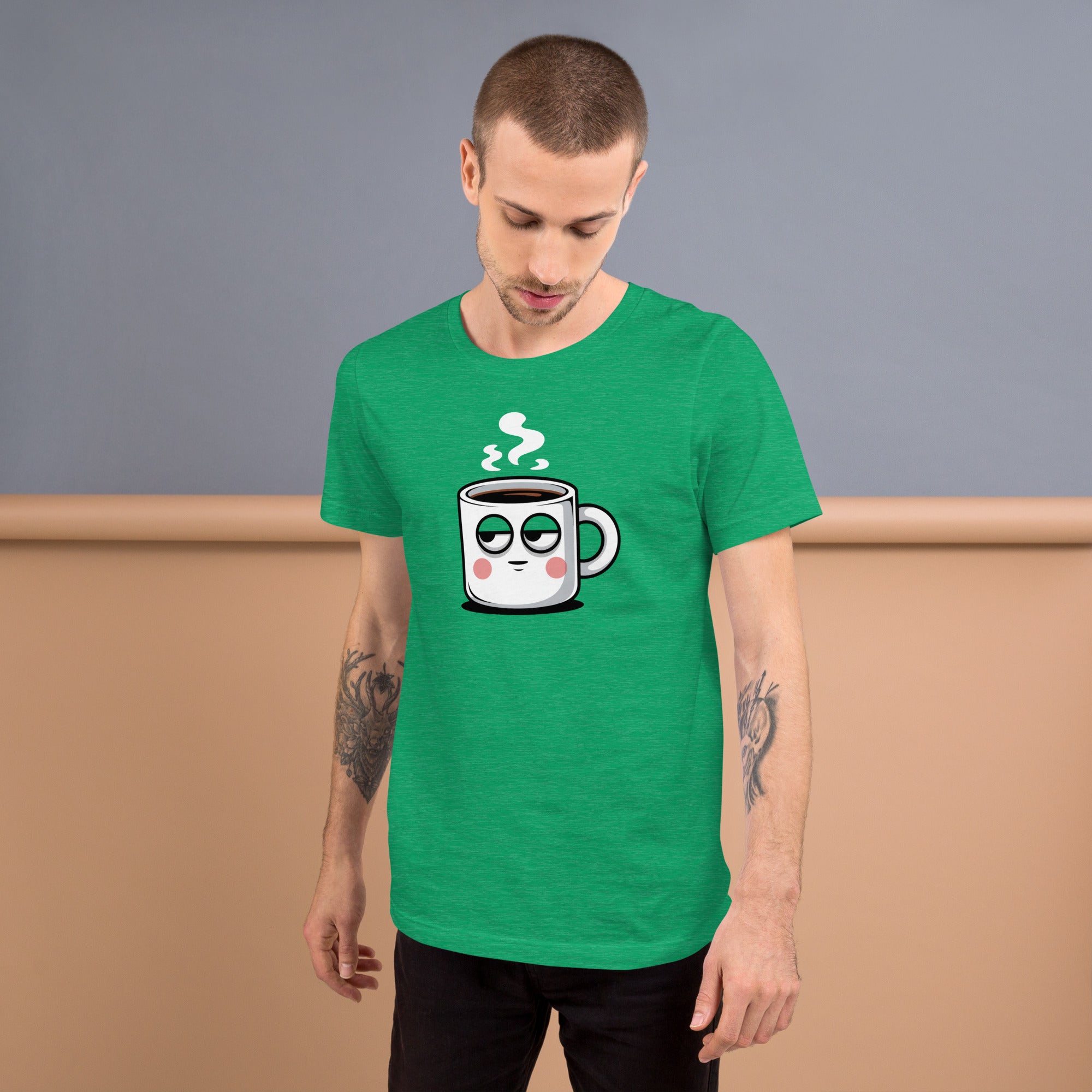 Before coffee, you are this mug. Sleepy cheeks, half-lidded eyes, and just enough sass. This tee is your morning mood in wearable form.